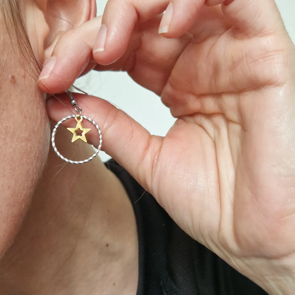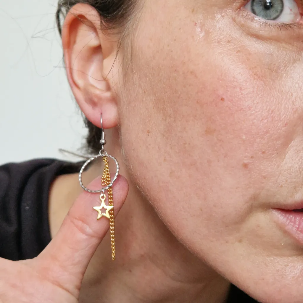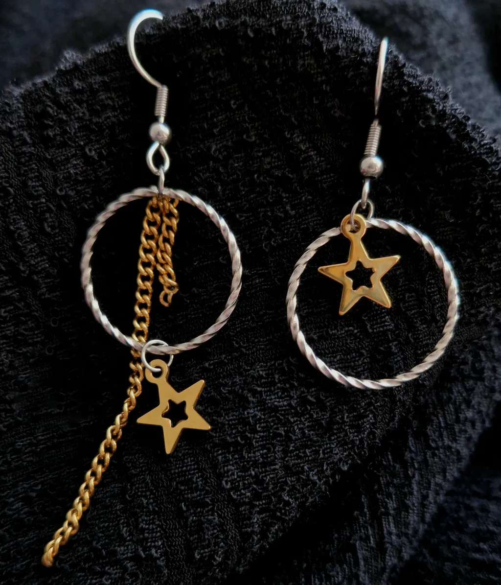 LEON, a mismatched symphony in stainless steel that celebrates your boldness. Each pair of earrings makes a true style statement, combining a star and a circle in a unique harmony.