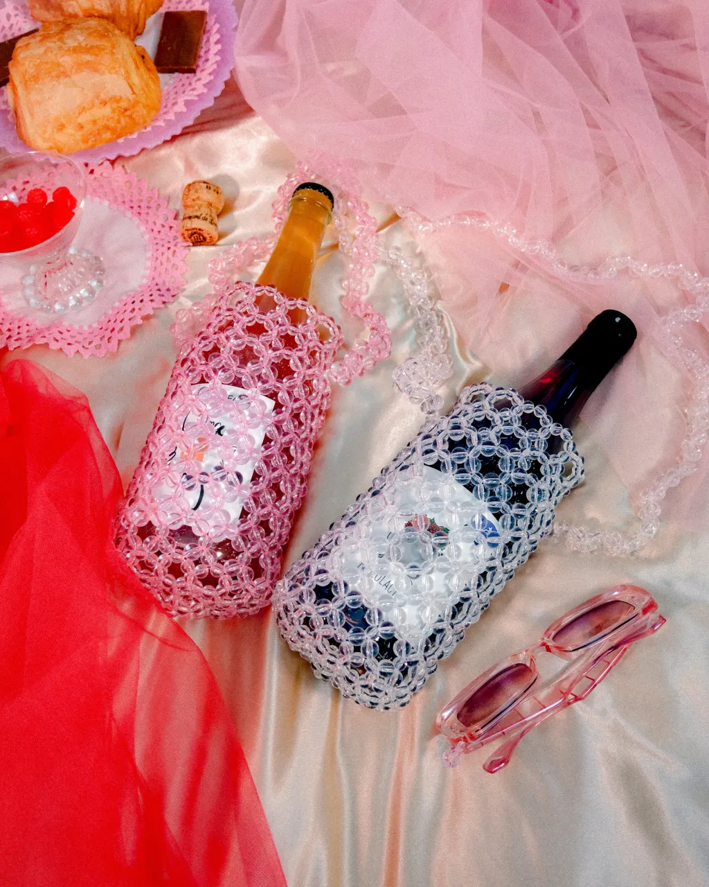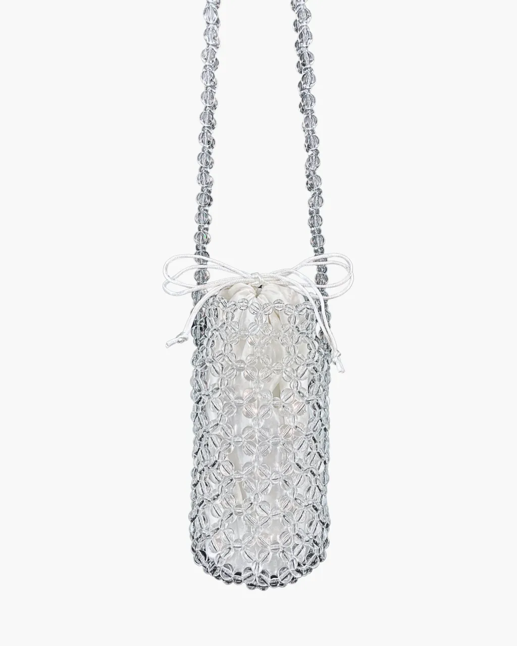 Comfortably holds a regular sized wine bottle or water bottle - up to 9cm in diameter. Chose between a short or long beaded strap.