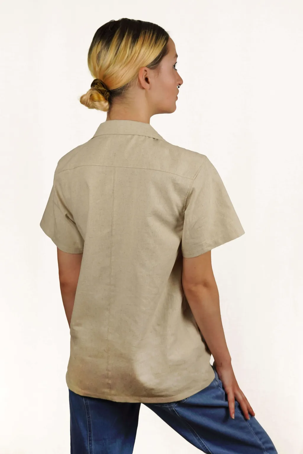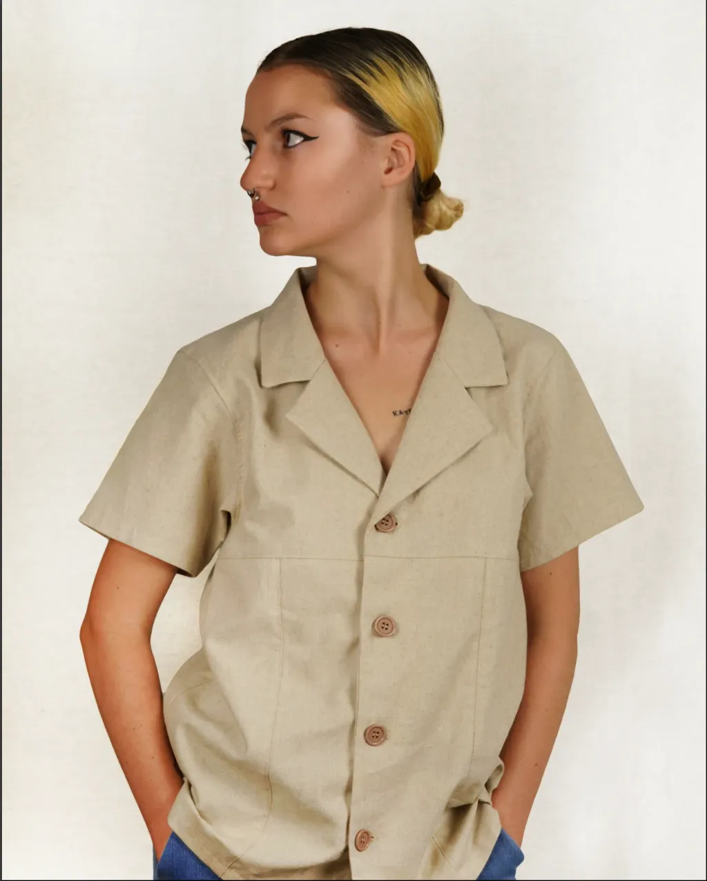 A tailored collar, 4 buttons on the front, several yokes and wide sleeves; this is what gives our shirt its unique style, in addition to the passion put into its making.
