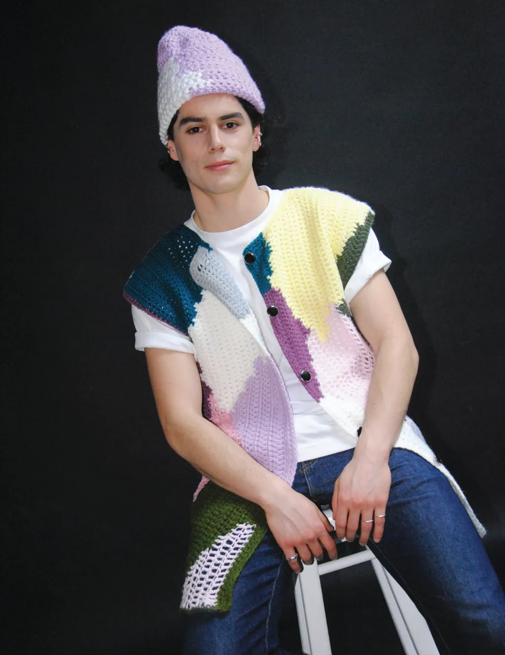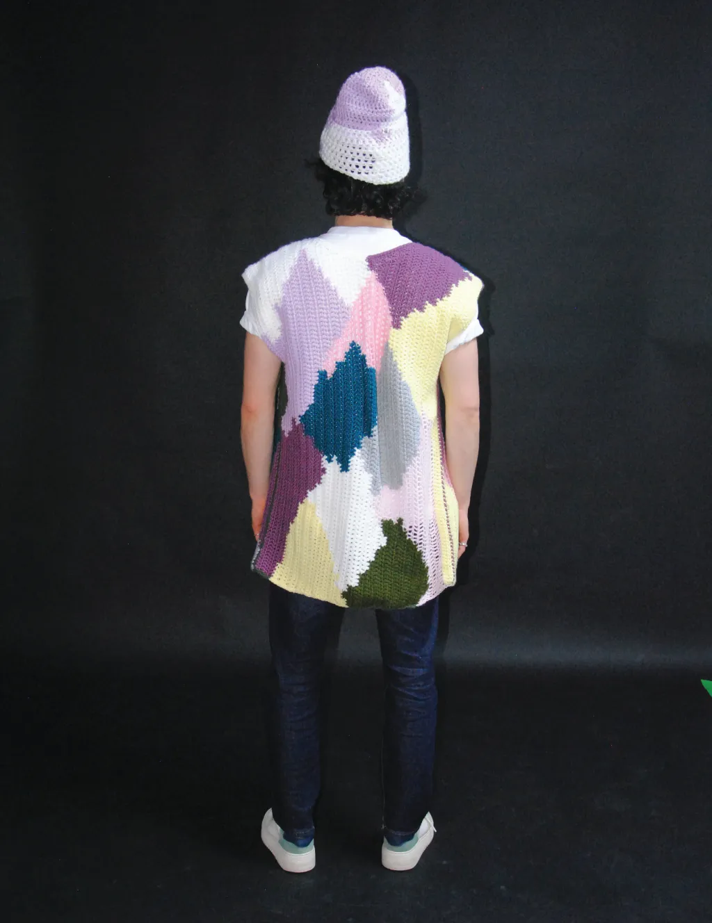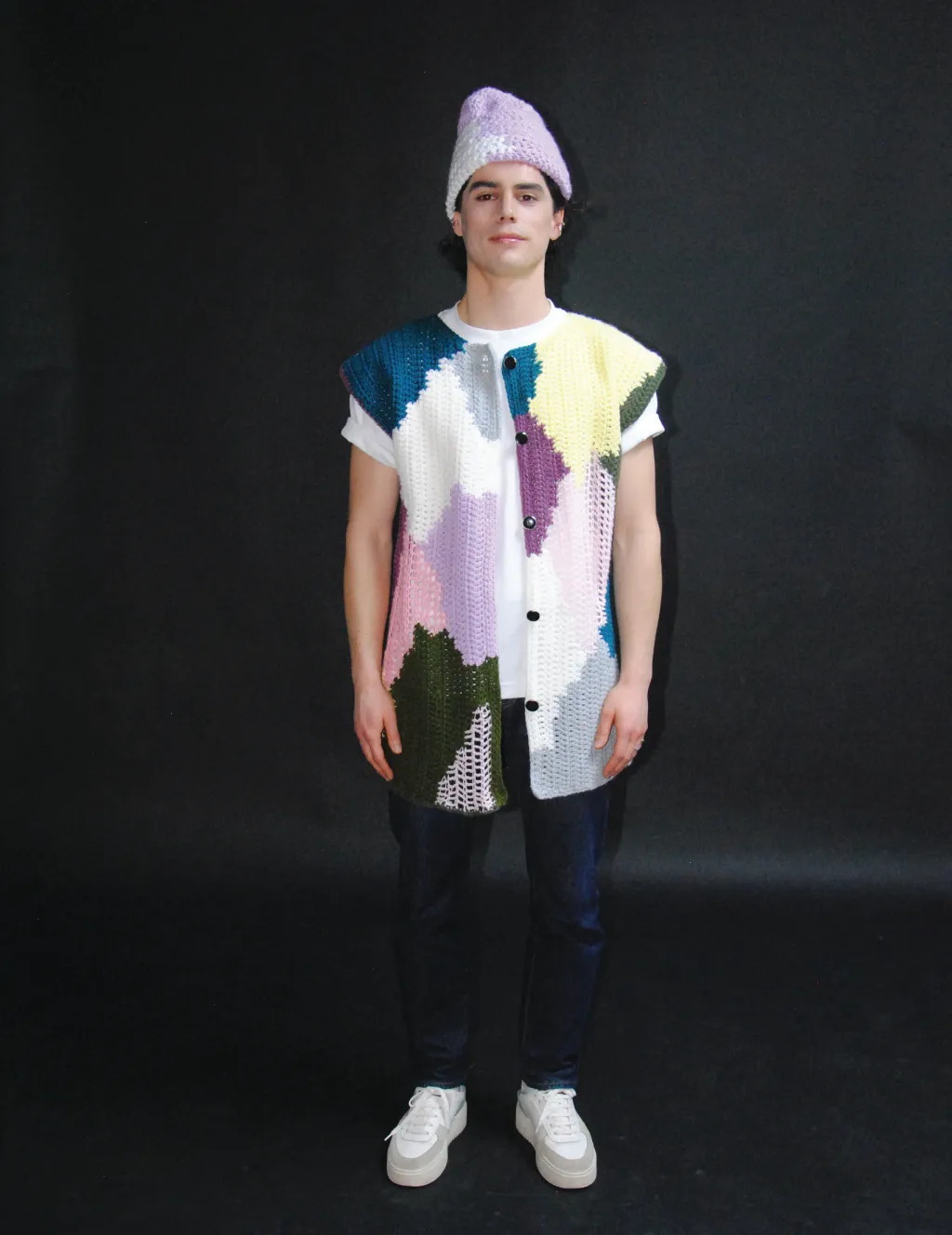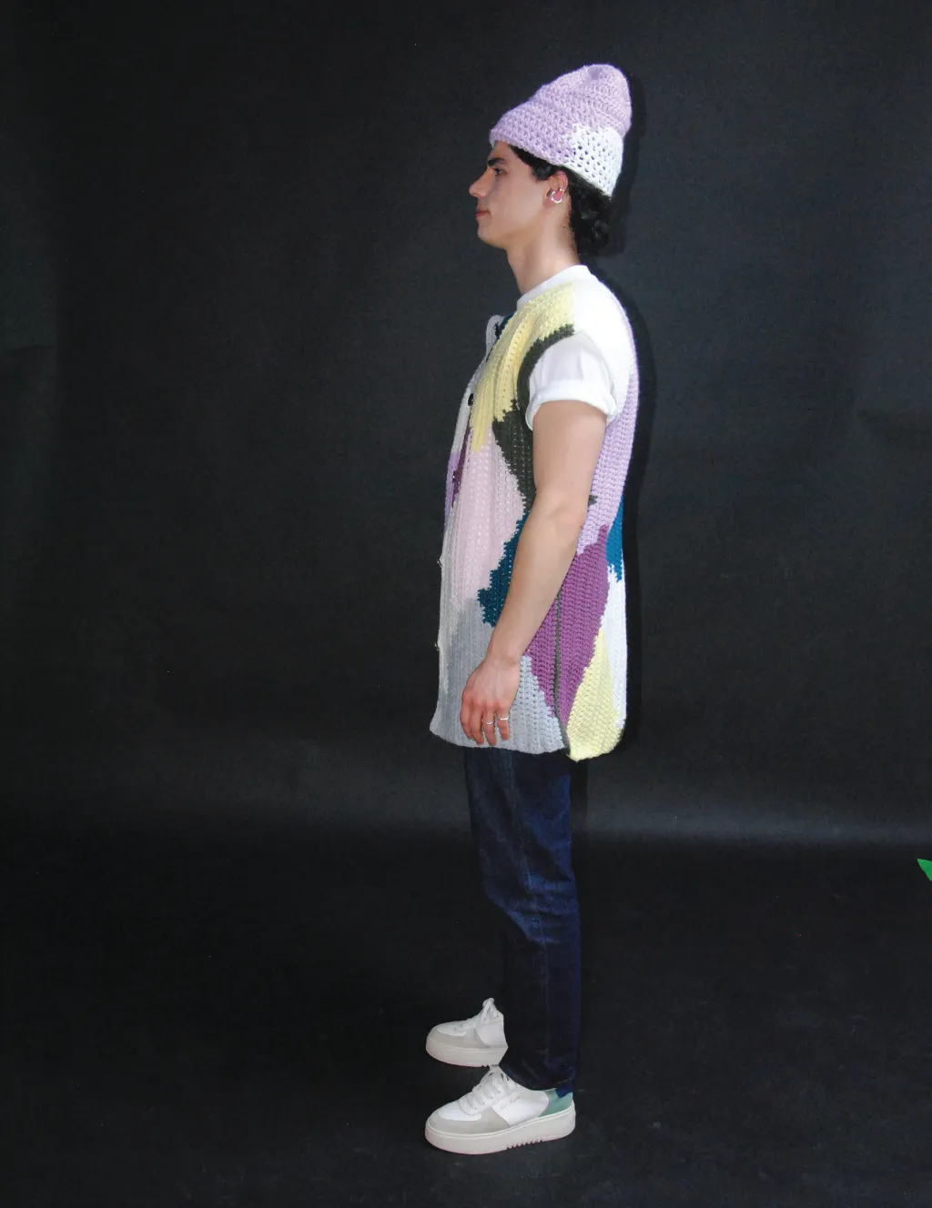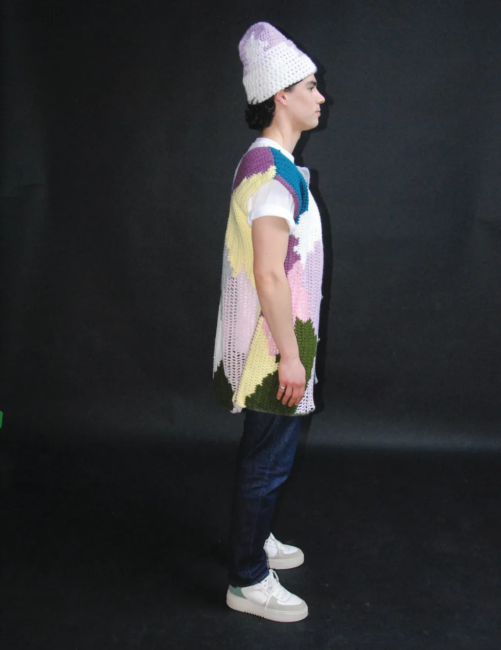 1 of 1 piece. Freehand crochet. Handmade using different colors and types of yarn to create a funky asymmetrical pattern