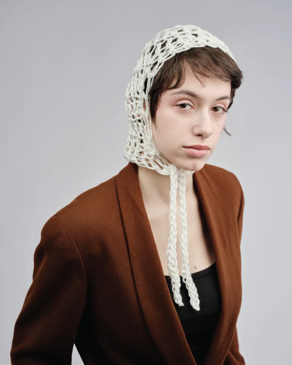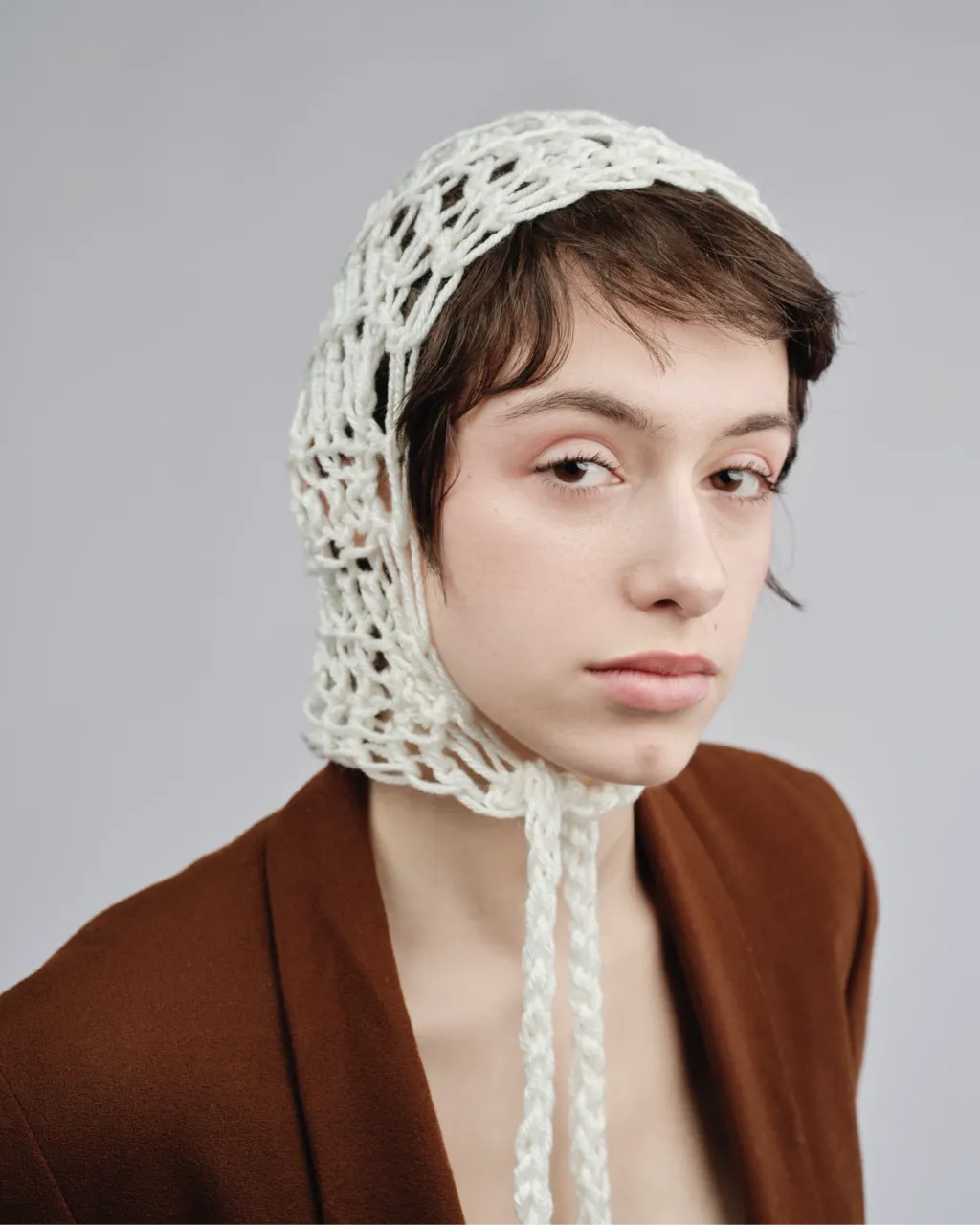 1/1 Hand crochet Bonnet, made with a see through stitch to texture up your outfits