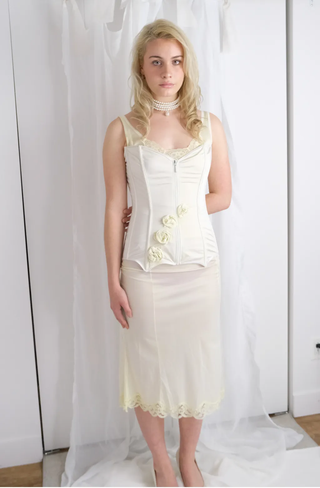 Adjustable lace-up side & zip-up side with handmade rosettes