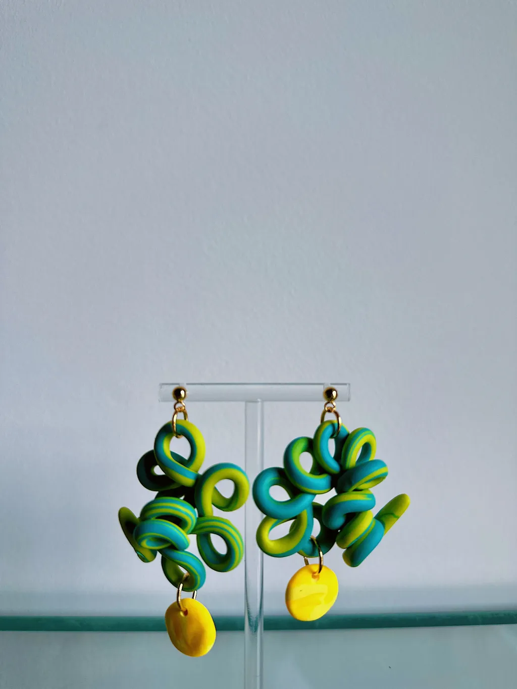 These polymer clay earrings are intricately crafted with vibrant colors and unique designs. Lightweight and durable, these earrings are perfect for any occasion and will make a stylish statement.