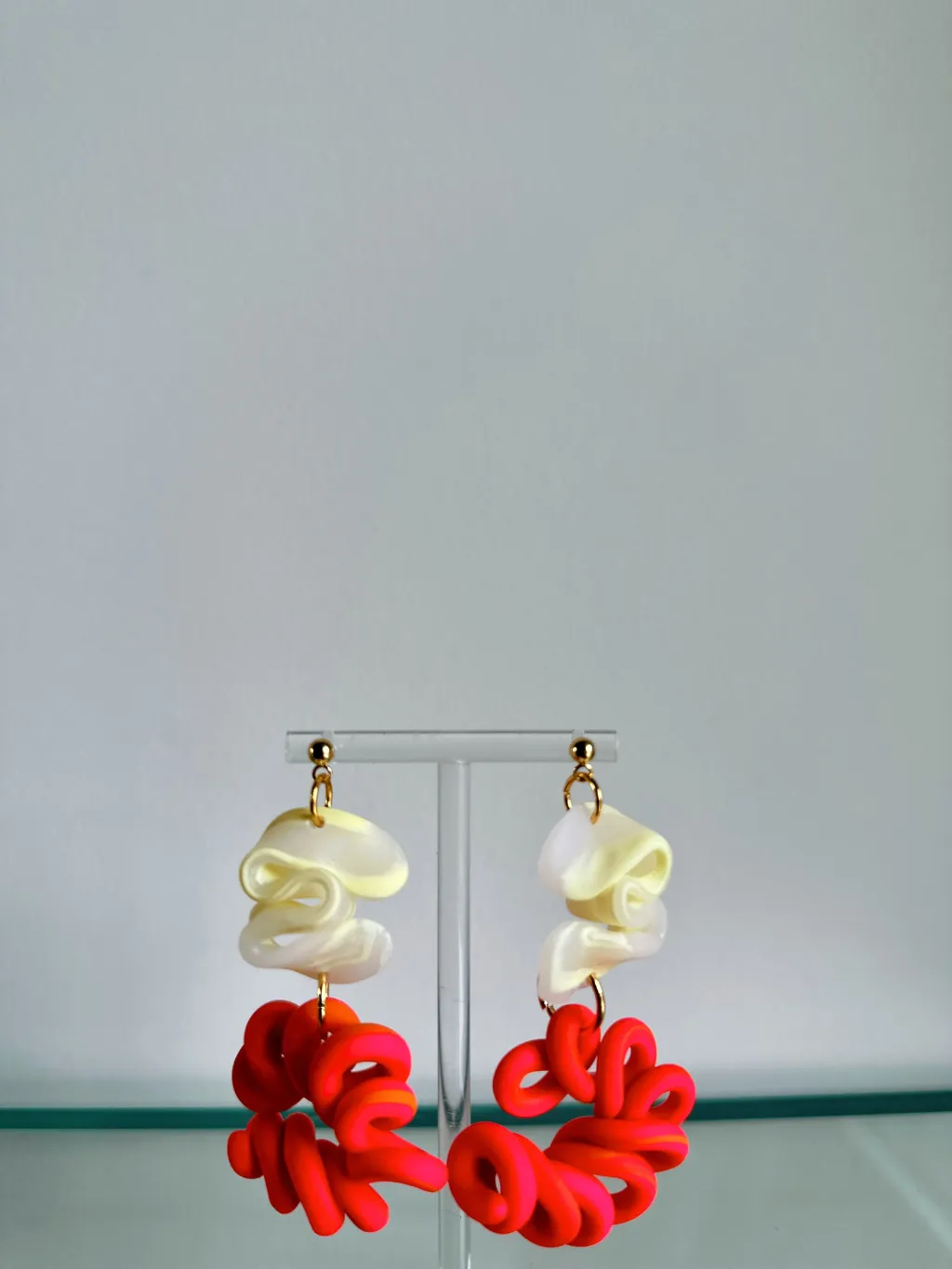 These polymer clay earrings are intricately crafted with vibrant colors and unique designs. Lightweight and durable, these earrings are perfect for any occasion and will make a stylish statement.