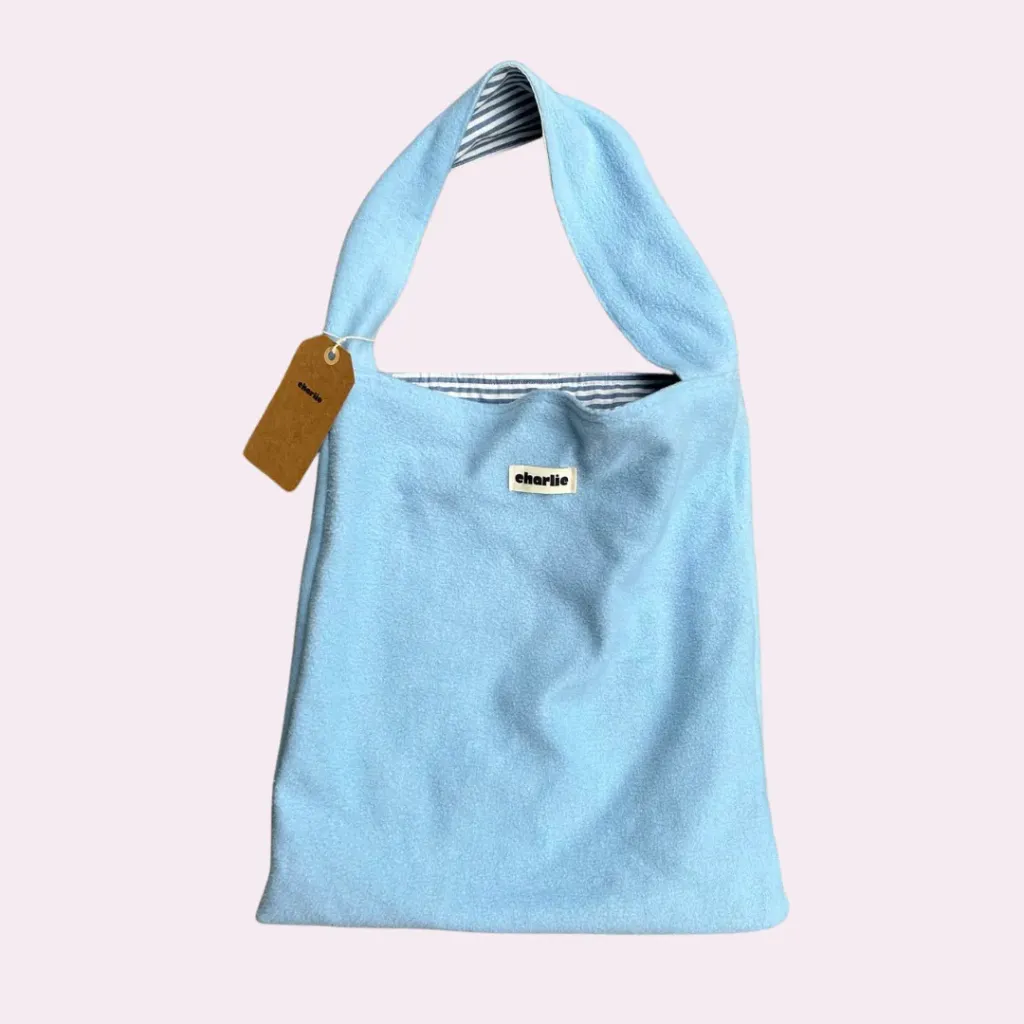 Tote bag with a pocket. Made from a blanket and a sheet.