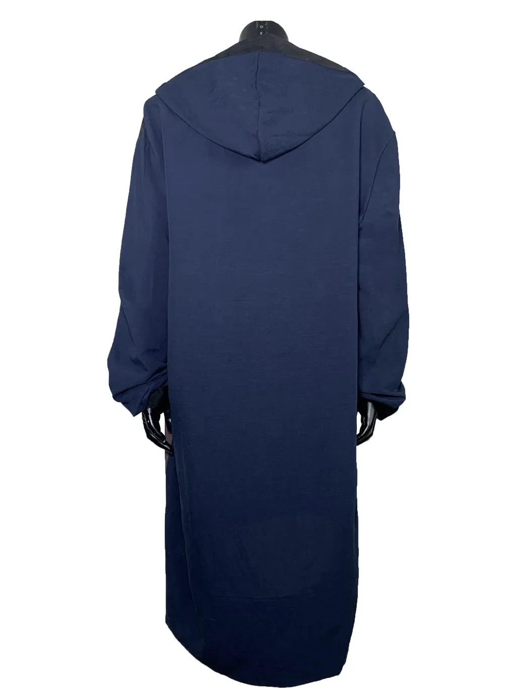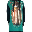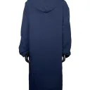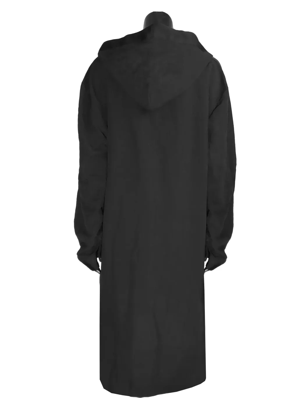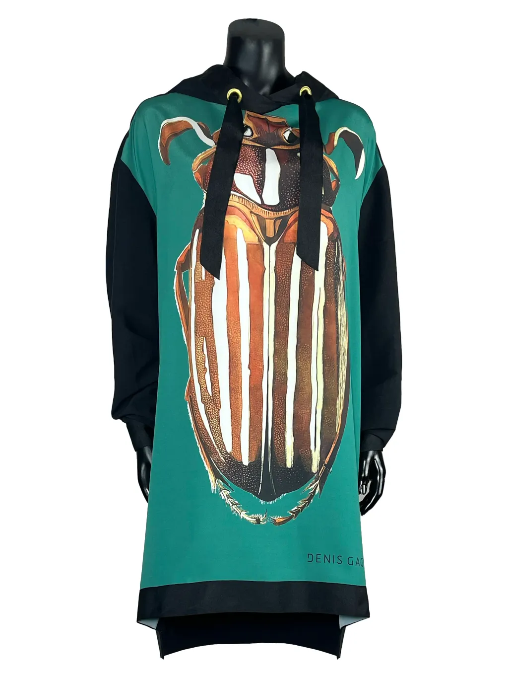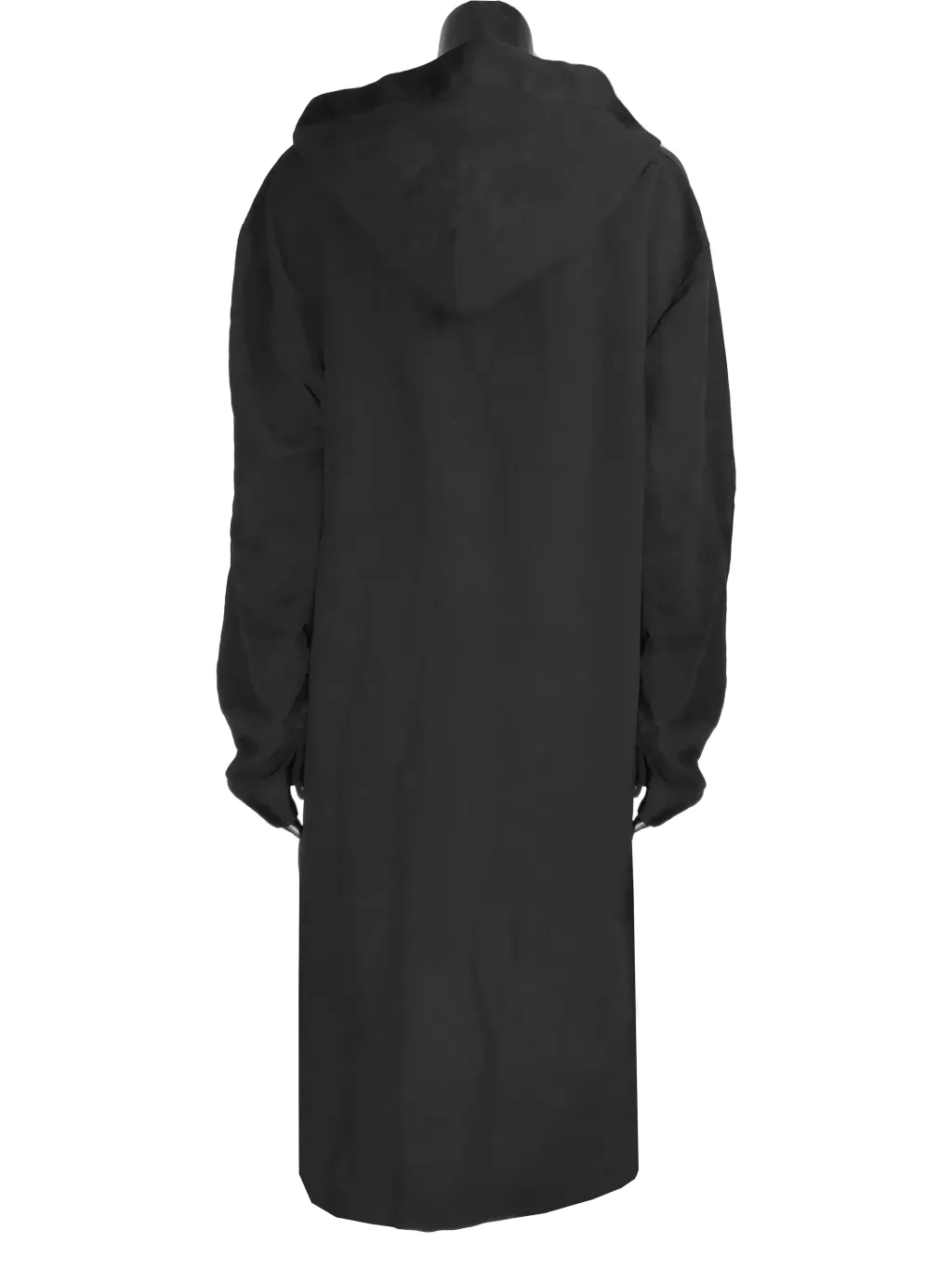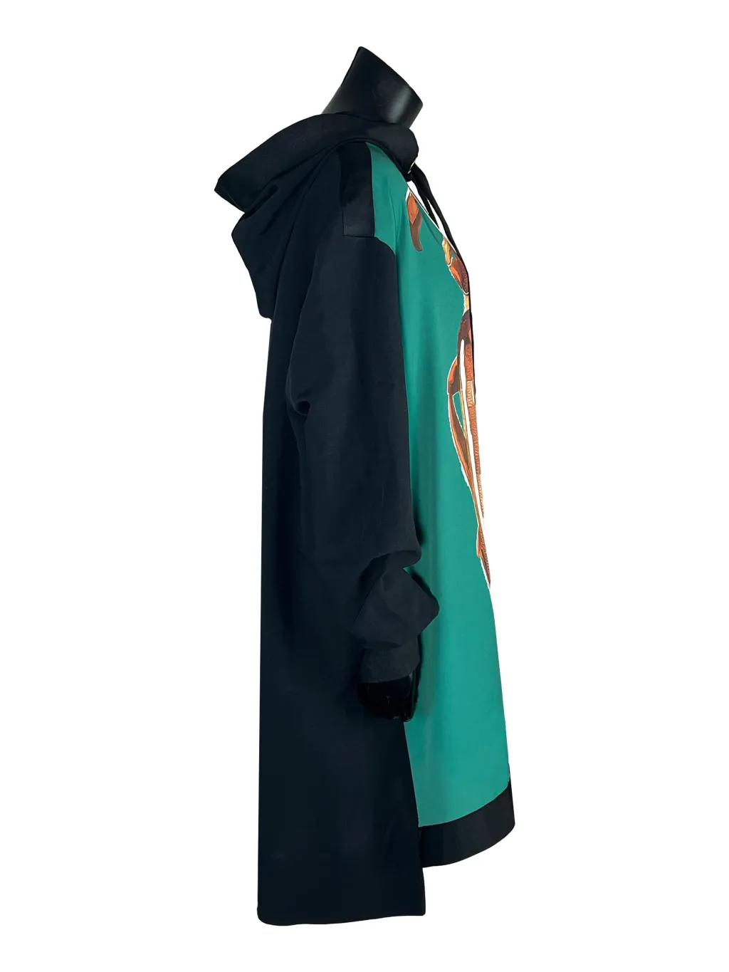 Long unisex hoodie with print, loose fit, drawstring with ribbon at the hood & back and sleeves in plain linen. Oeko-tex certified textile One size fits most body shapes