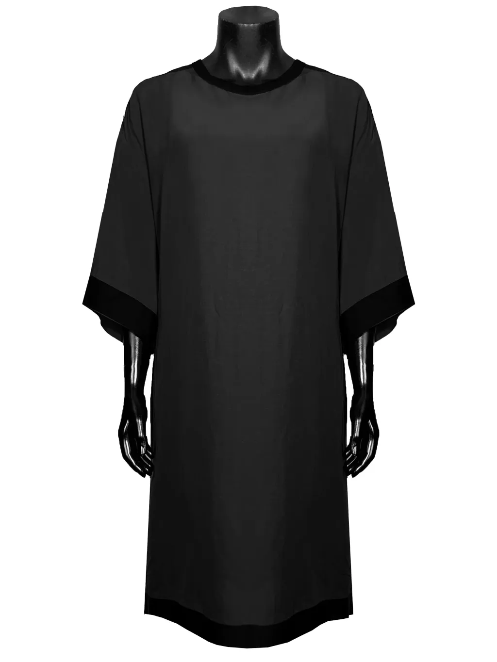 Unisex linen oversize tee-shirt with black grosgrain details on the shoulders and bottom.