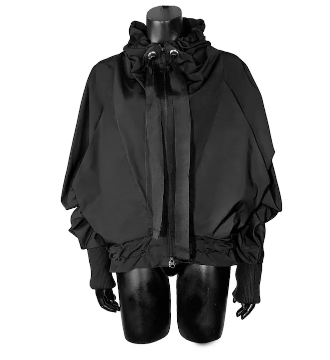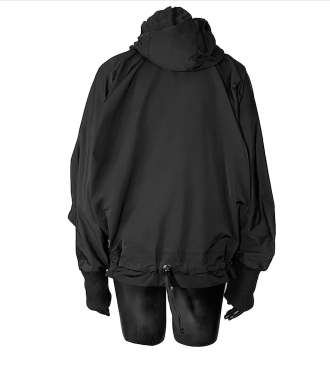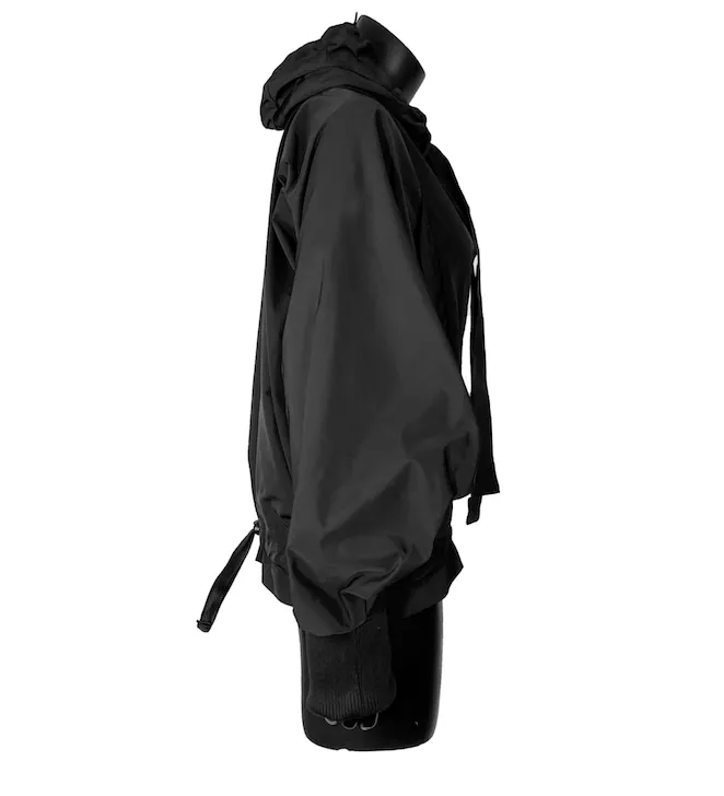 Short unisex windbreaker in polyester taffeta, zipper details on the hood, adjustable drawstring at the hips, grosgrain ribbon details and ribbed detail on the cuffs