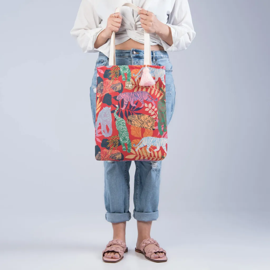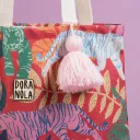This tote bag is the perfect size for your laptop, books, or lunch on the go. Adorned with a charming yarn tassel in varying colours and an enamelled Dora Nola logo plate. Who can resist function and style all in one?