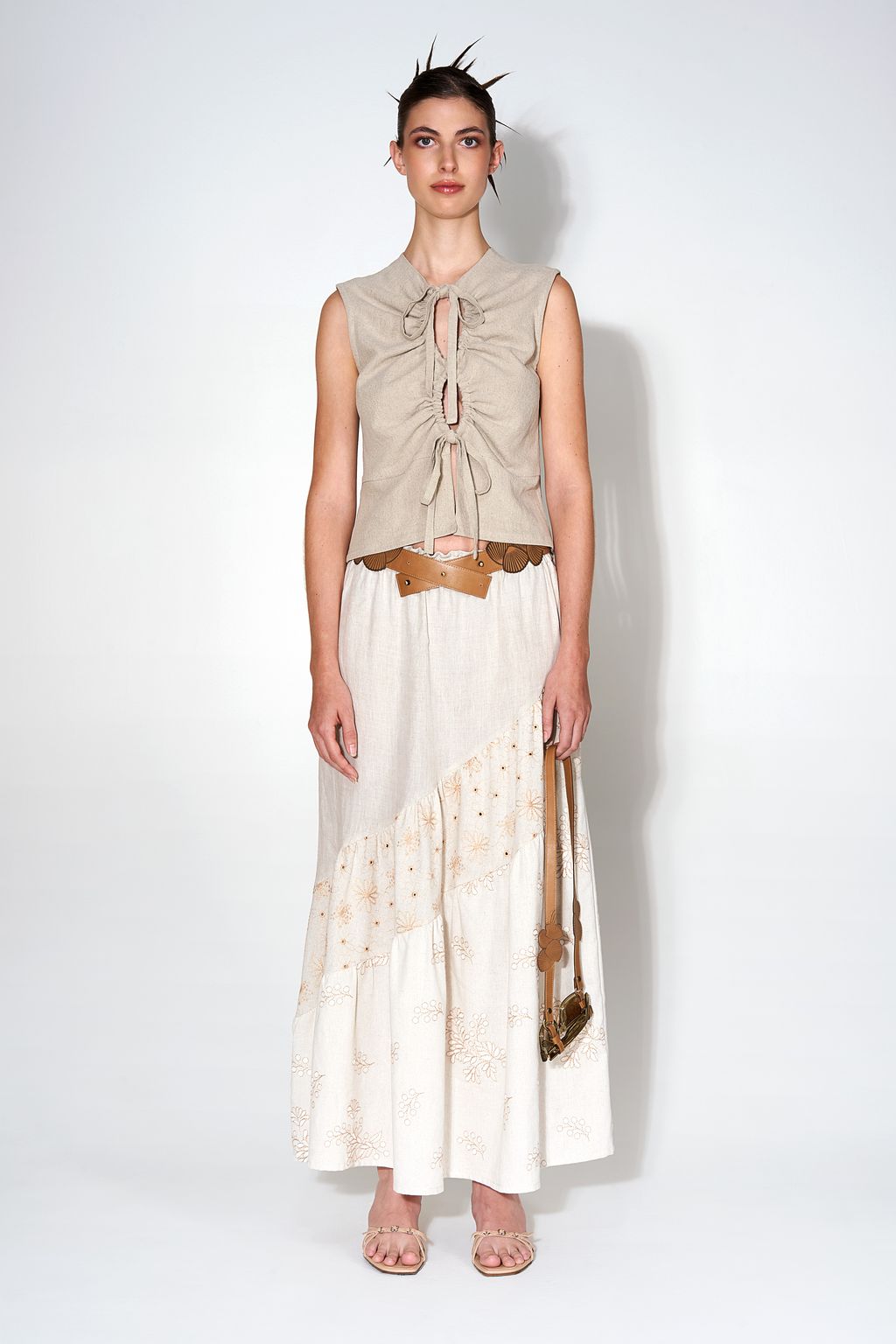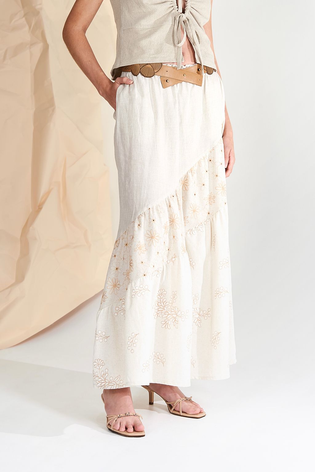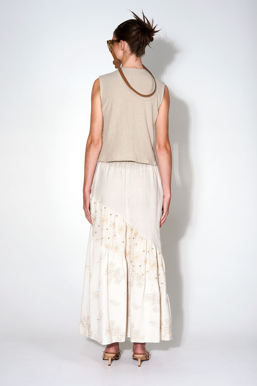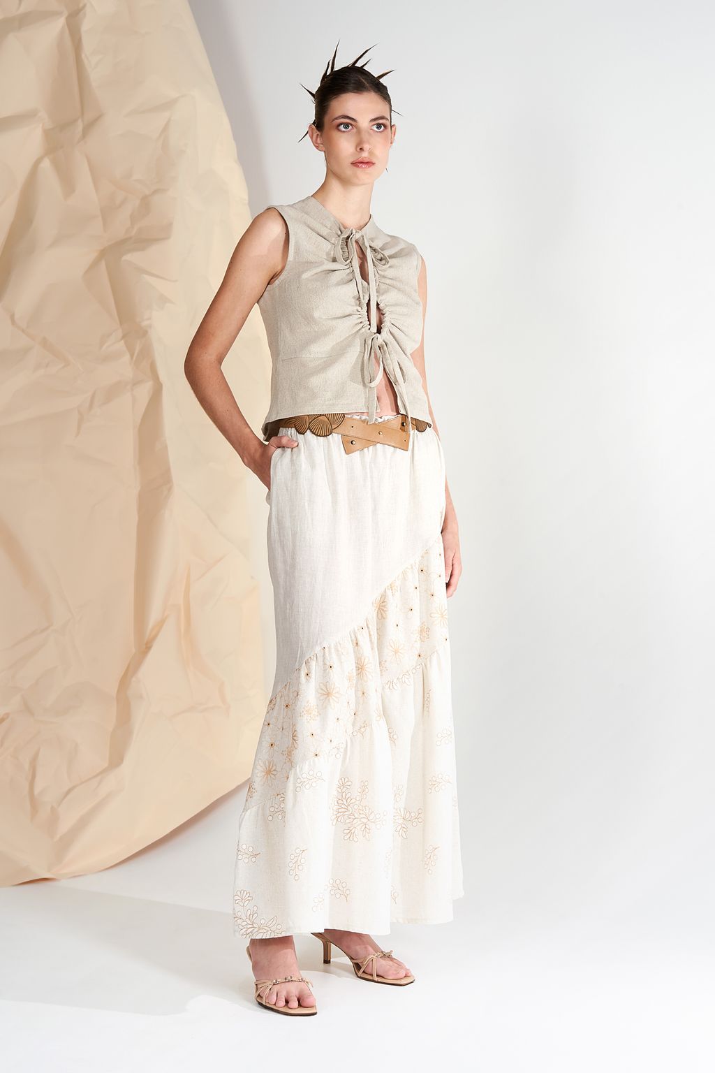 This easygoing asymmetrical summer skirt is perfect for everyday wear. You can wear it high or low waist. We recommend sizing up if you prefer to wear it low-waisted.