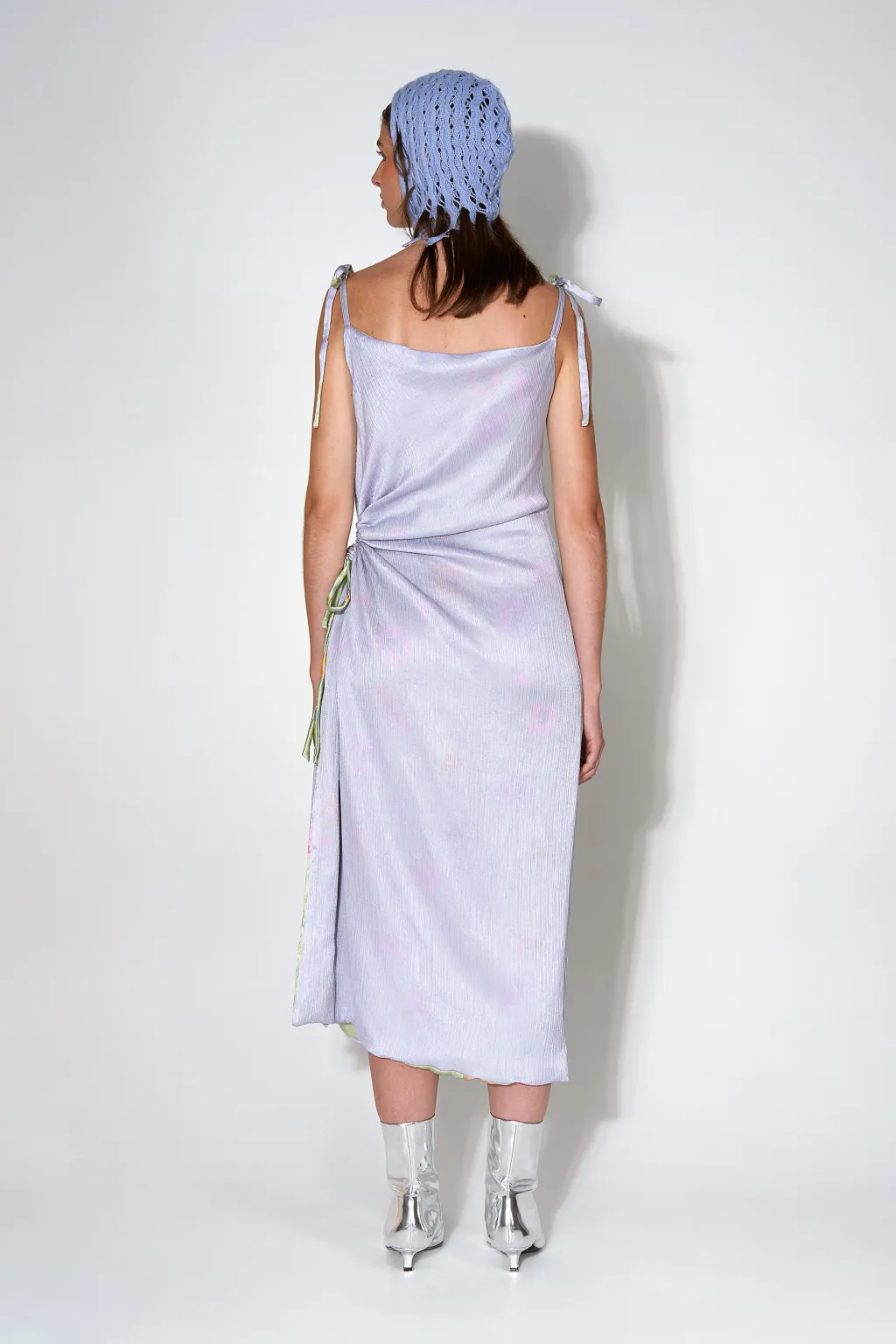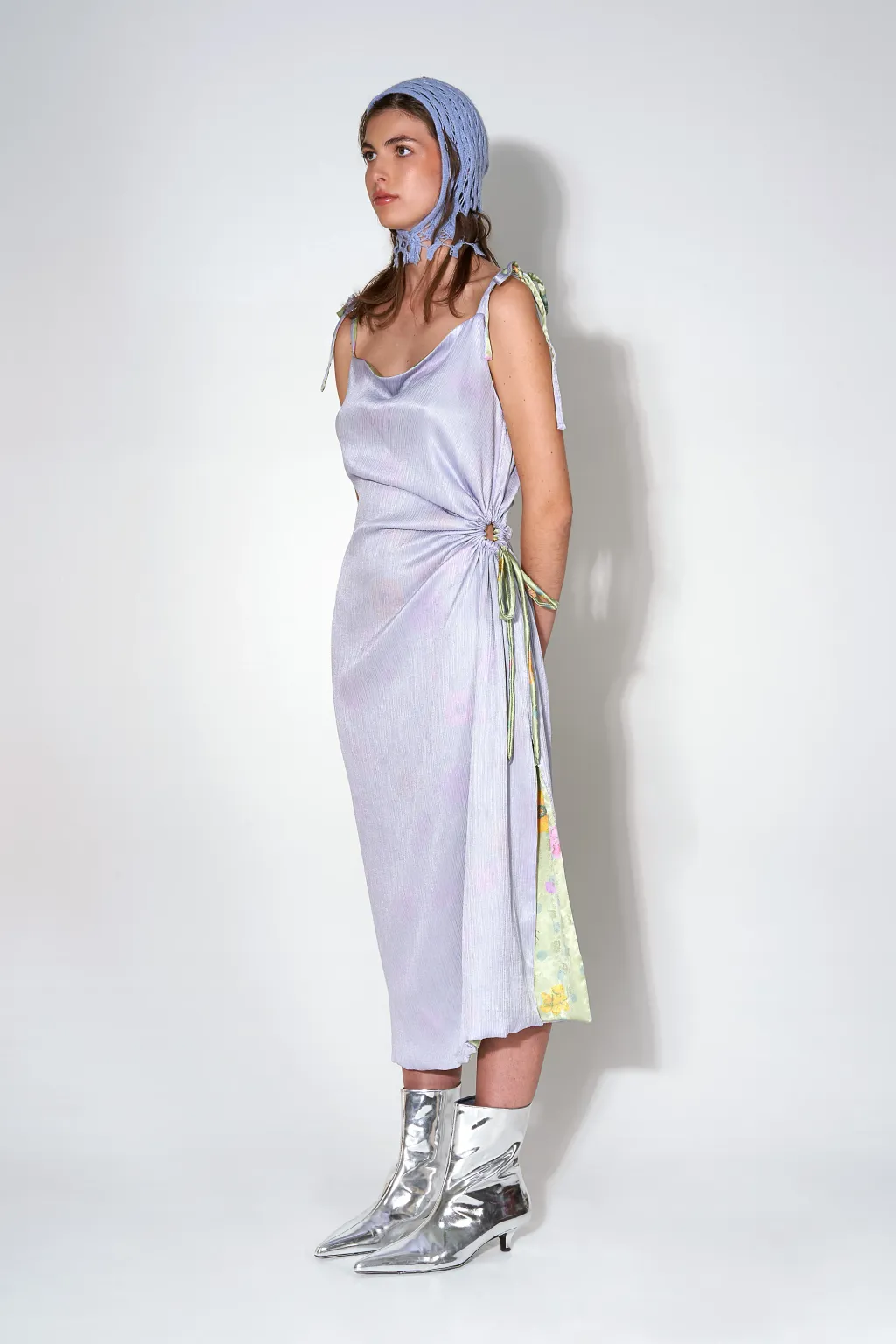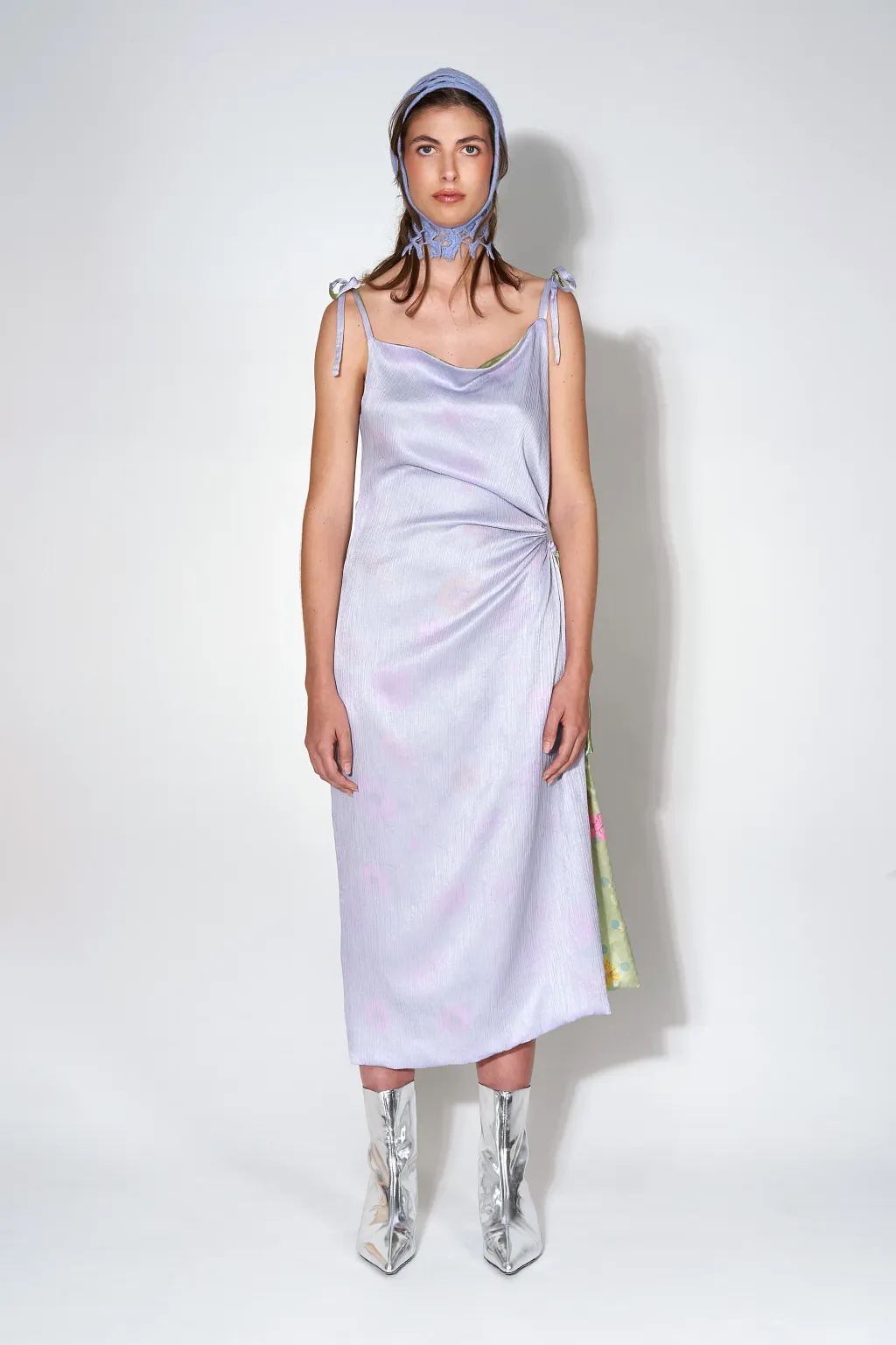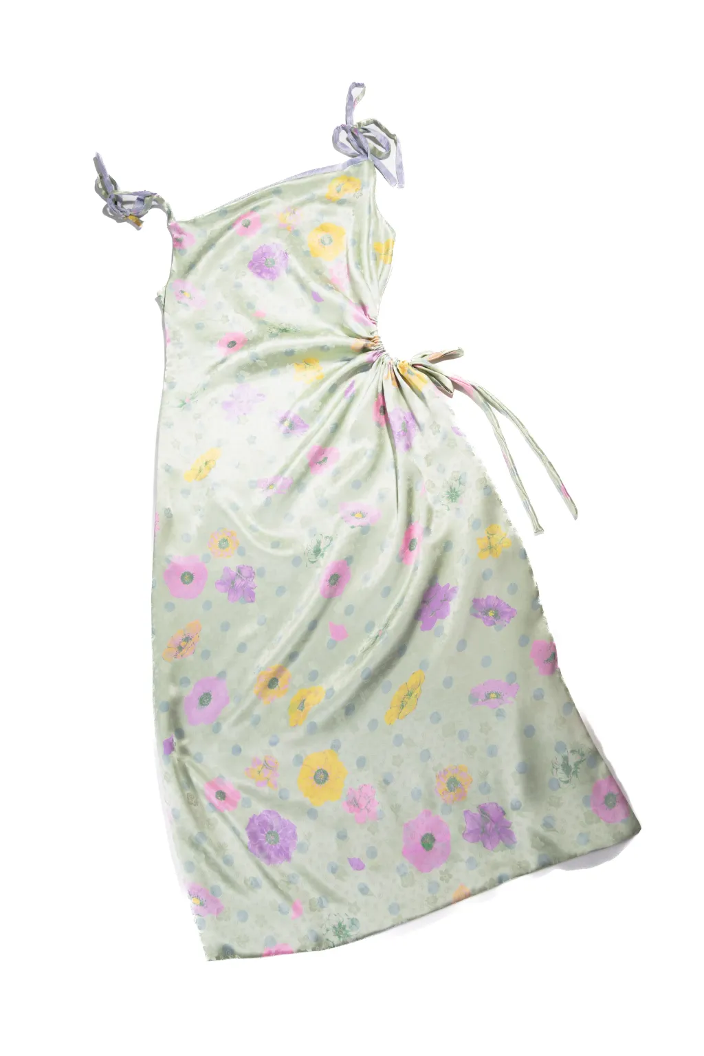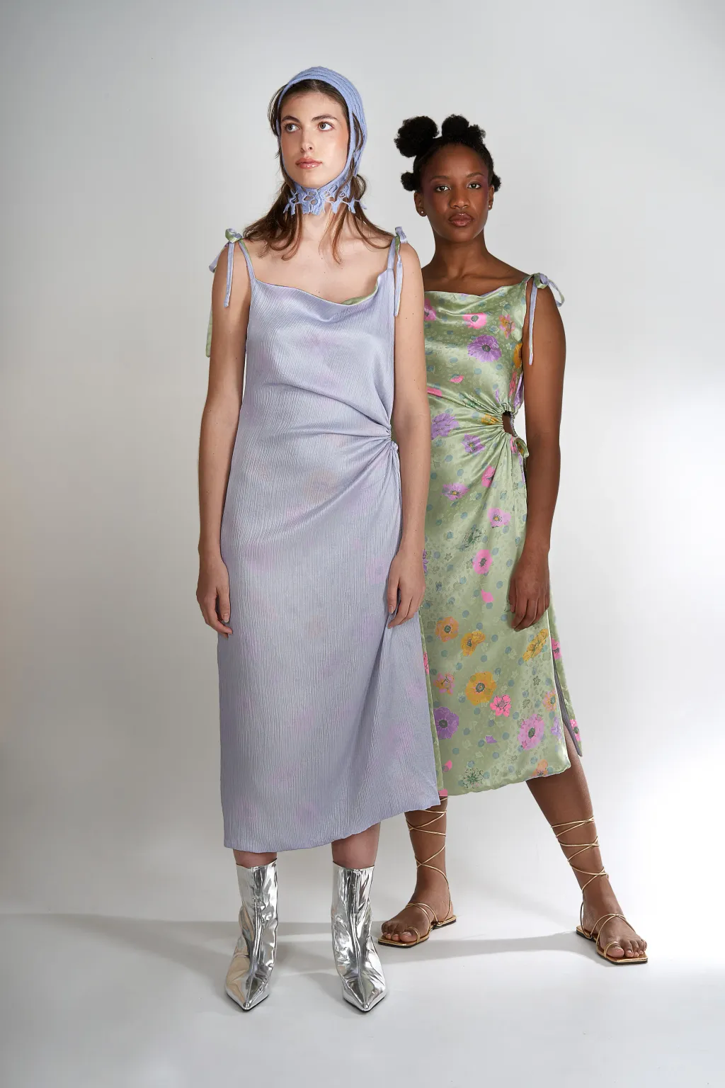 One side in creased lilac Silk Cotton and another in pistachio green floral silk (deadstock).