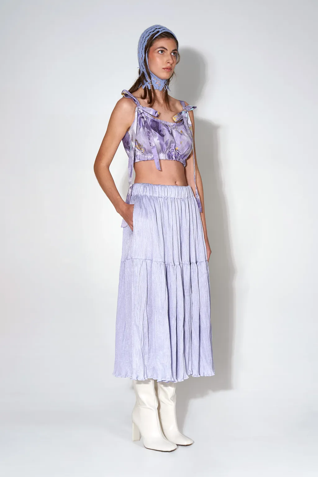 Our romantic naturally creased lilac Skirt is a seasonless piece that can be worn all around the year. Make it edgy and wear it with a black leather jacket and boots.