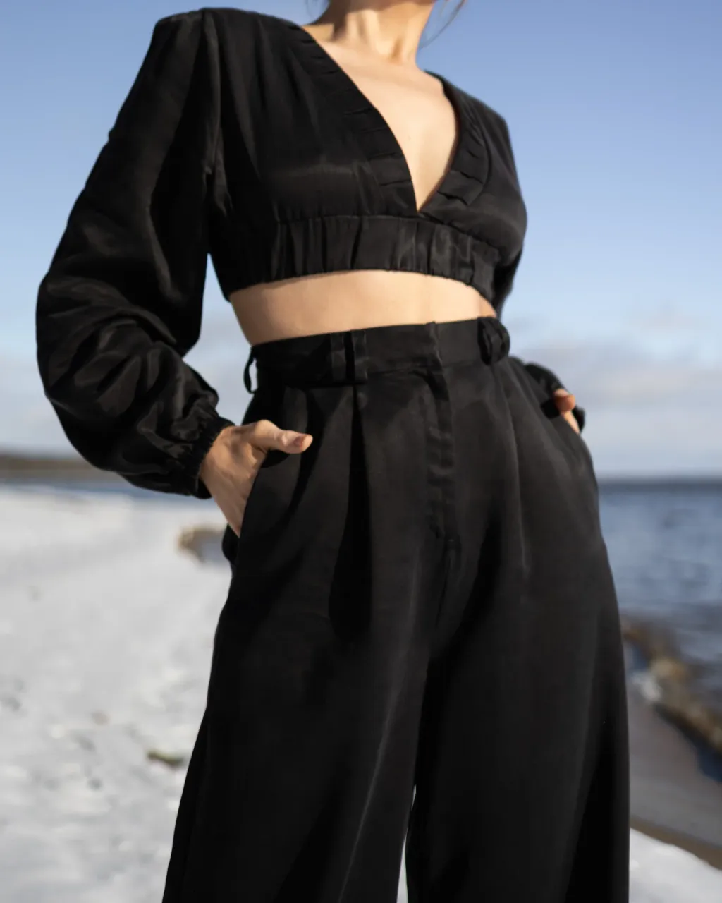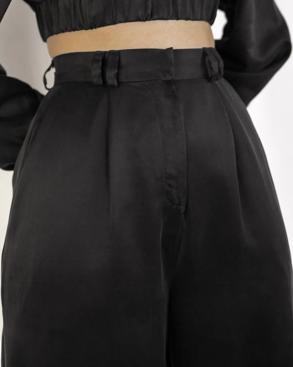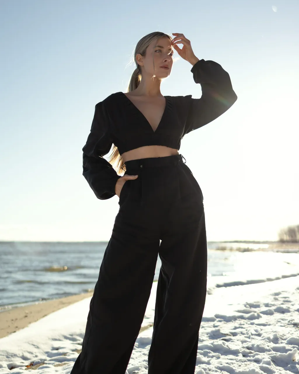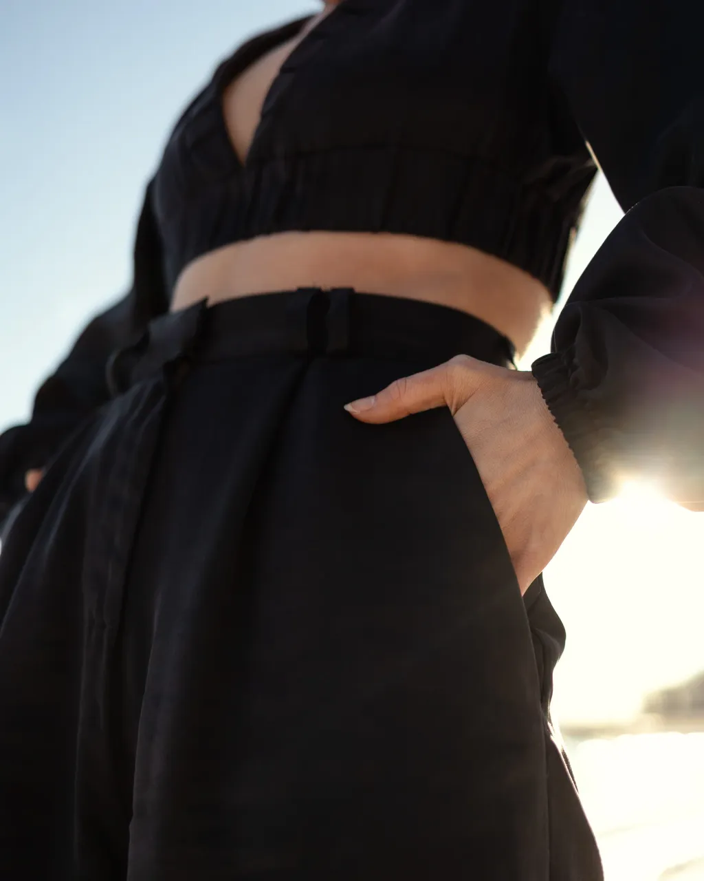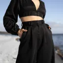 A reinvented classic, the Casia trousers offer an elegant fit that does not go unnoticed. The high, cinched waist, wide legs, and darts at the front and back all ally to create a flattering fit, which gives an endless legs illusion. We selected the highly durable fabric that is linen to create Casia. This one is a real favorite for us, both for its color, its texture, and its composition.