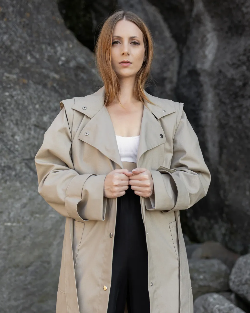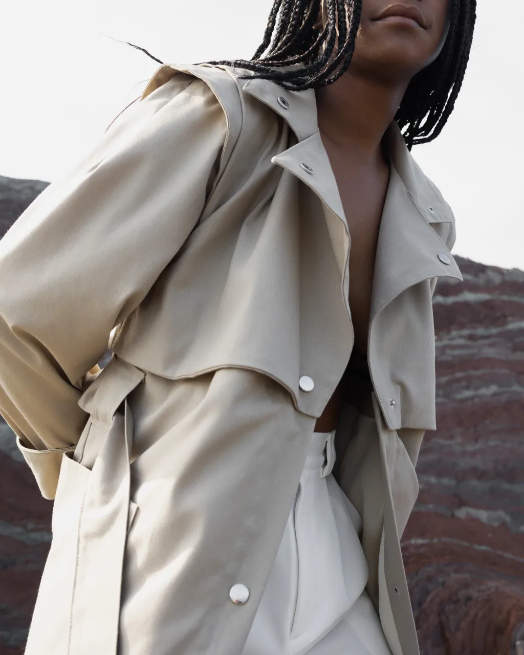 Zora is our innovative take on the great classic that is the trench coat. A timeless essential reinvented to allow you to maximize this iconic piece. The Zora convertible trench coat transforms to create 4 different pieces that will bring diversity and unicity to your wardrobe. a unique piece that will last throughout any season, occasion and era.