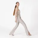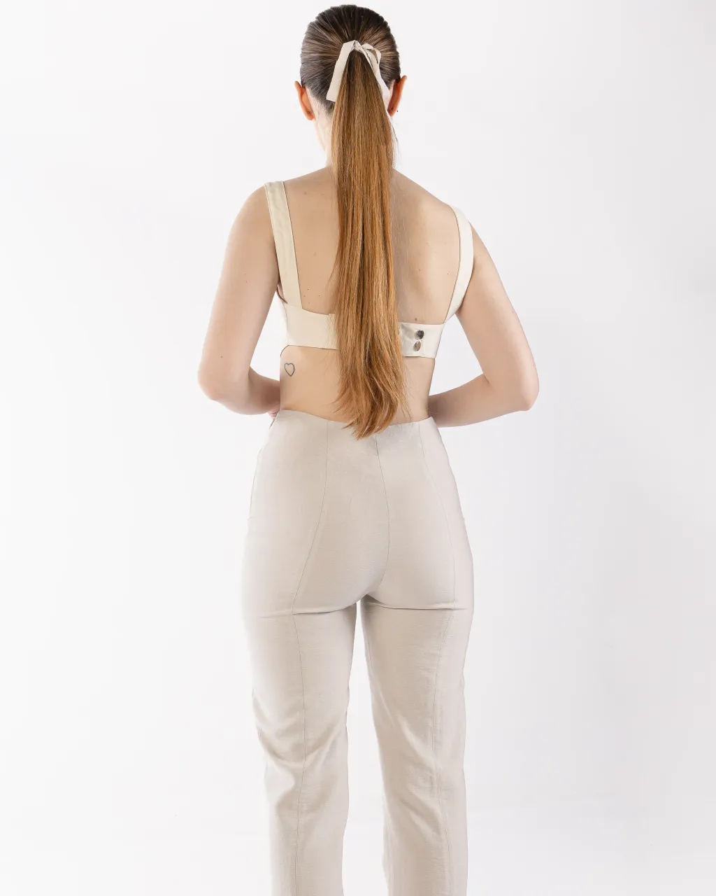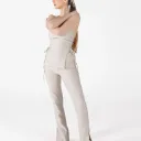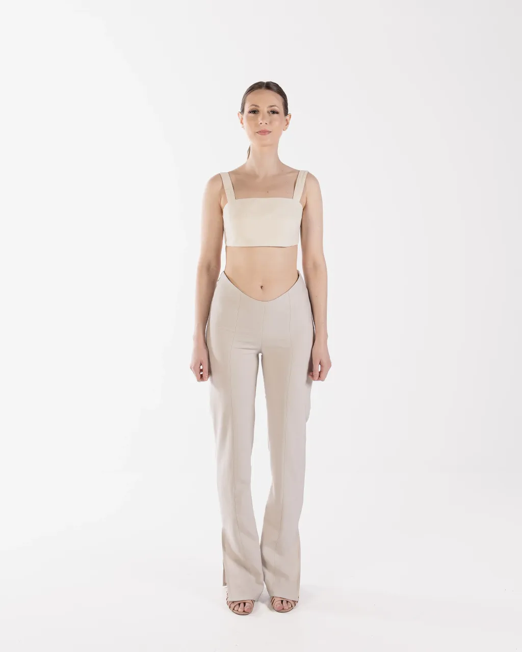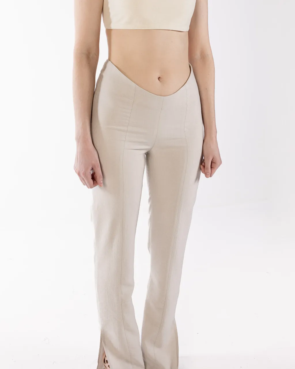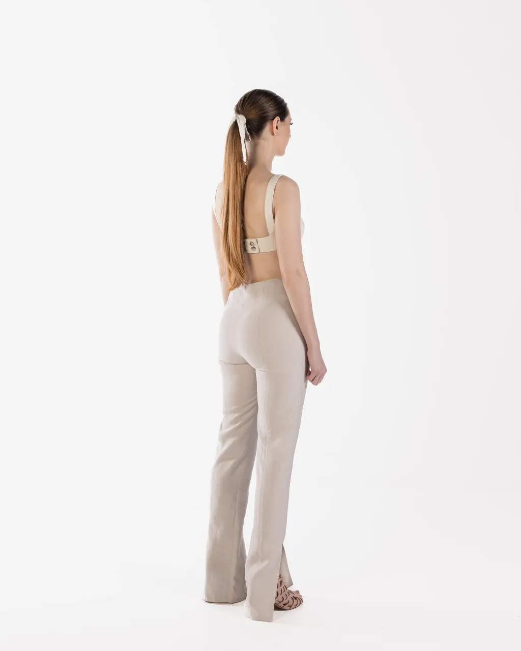 Make a statement with our Ellis Pants, a staple piece in our Risky Business collection. These pants feature a high waist at the back and medium waist at the front, providing a flattering fit for all body types. The invisible zipper on the left side ensures a seamless look, while the flared legs and slit at the bottom add a touch of elegance to your look. The Ellis Pants are perfect for any occasion, from the office to a night out.