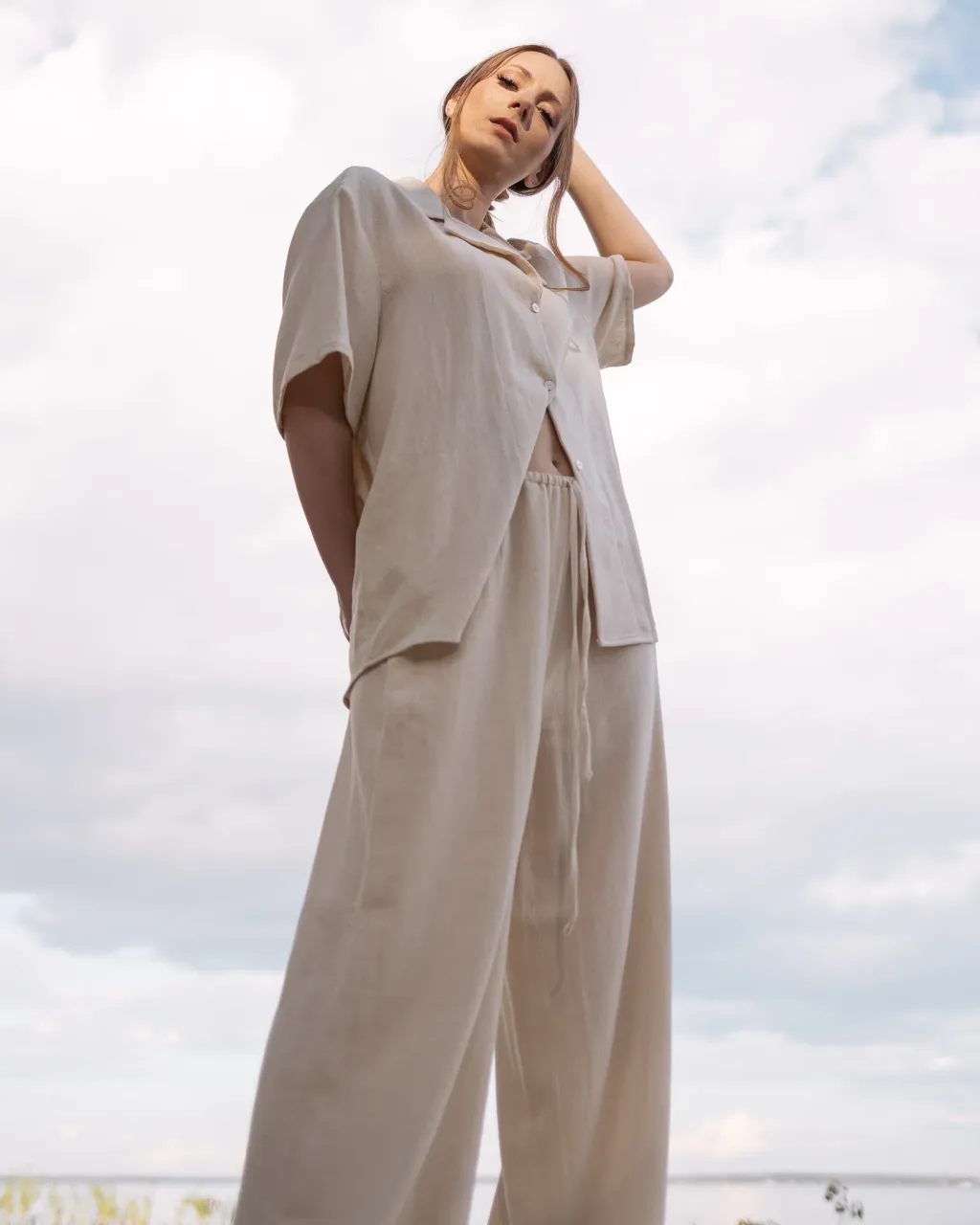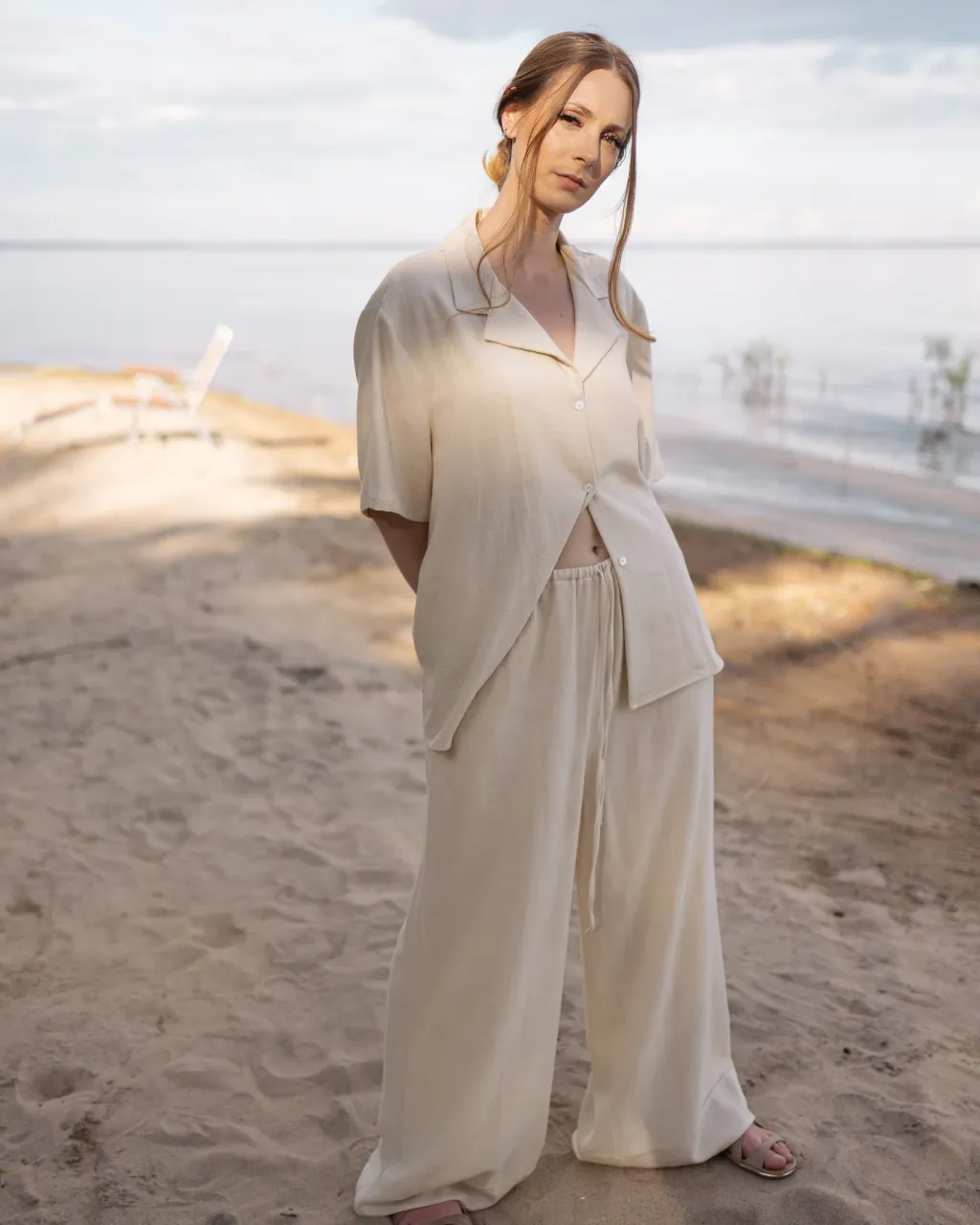 Both elegant and casual, Flo easily adapts to any situation. The flowy pants fall beautifully on the body offering the ultimate comfort. The elastic, combined with its drawstring at the waist, make for a perfect fit.