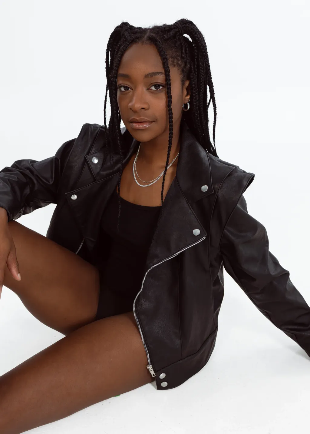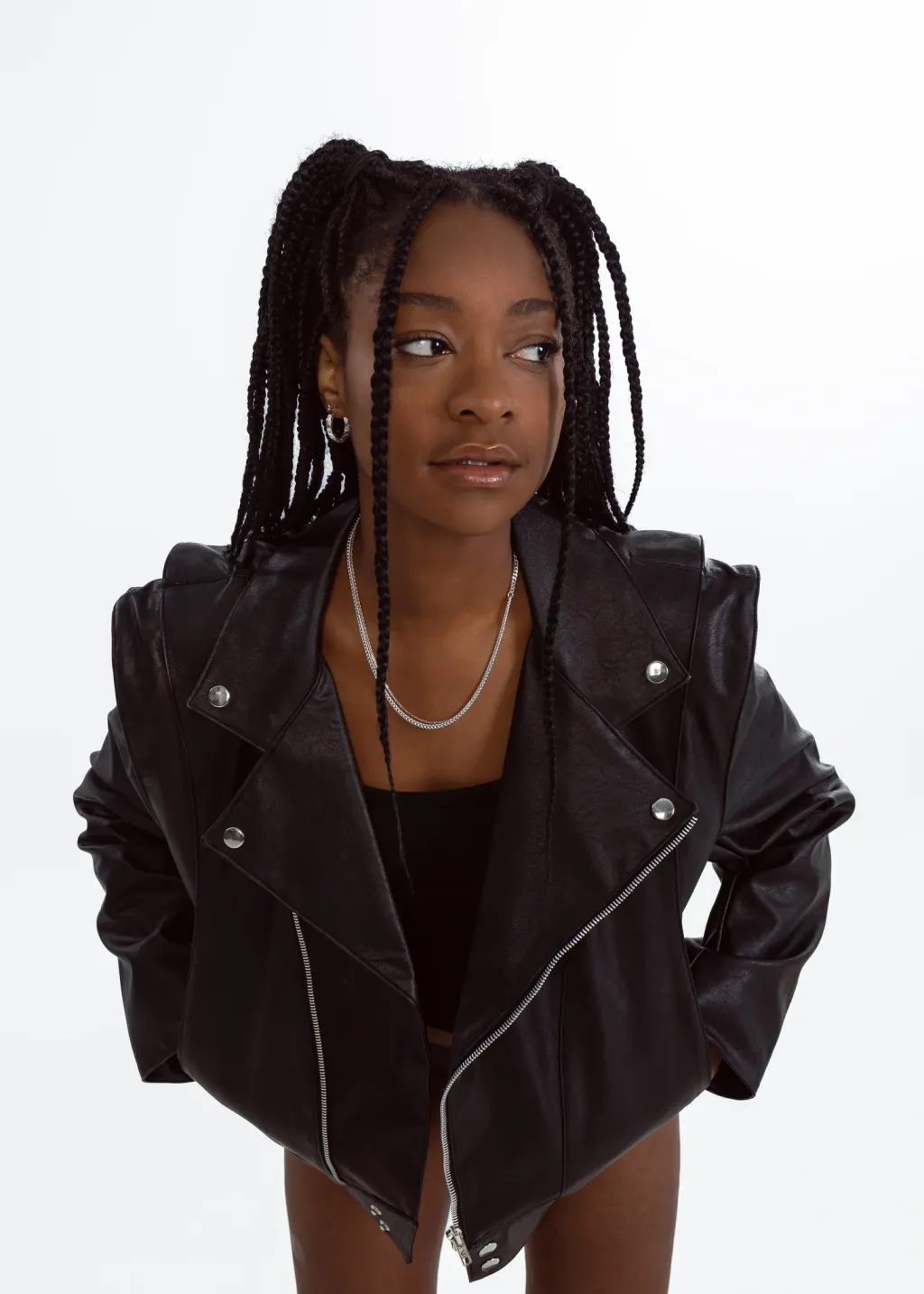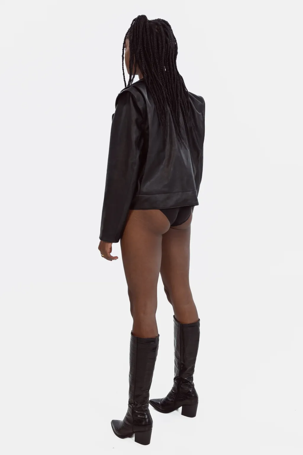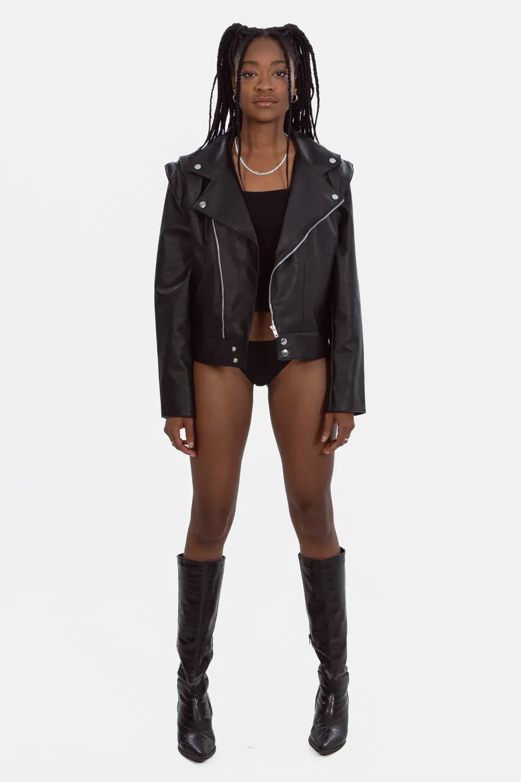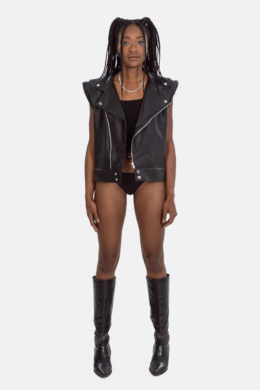 The Vegan Leather Convertible Jacket is our take on a fashion classic. This timeless piece features the elements of the classic biker jacket, with unique details signed EIV, to create the perfect balance between edgy and elegant. This unique piece can be easily transformed into a sleeveless jacket, thanks to its concealed zippers at the shoulders.