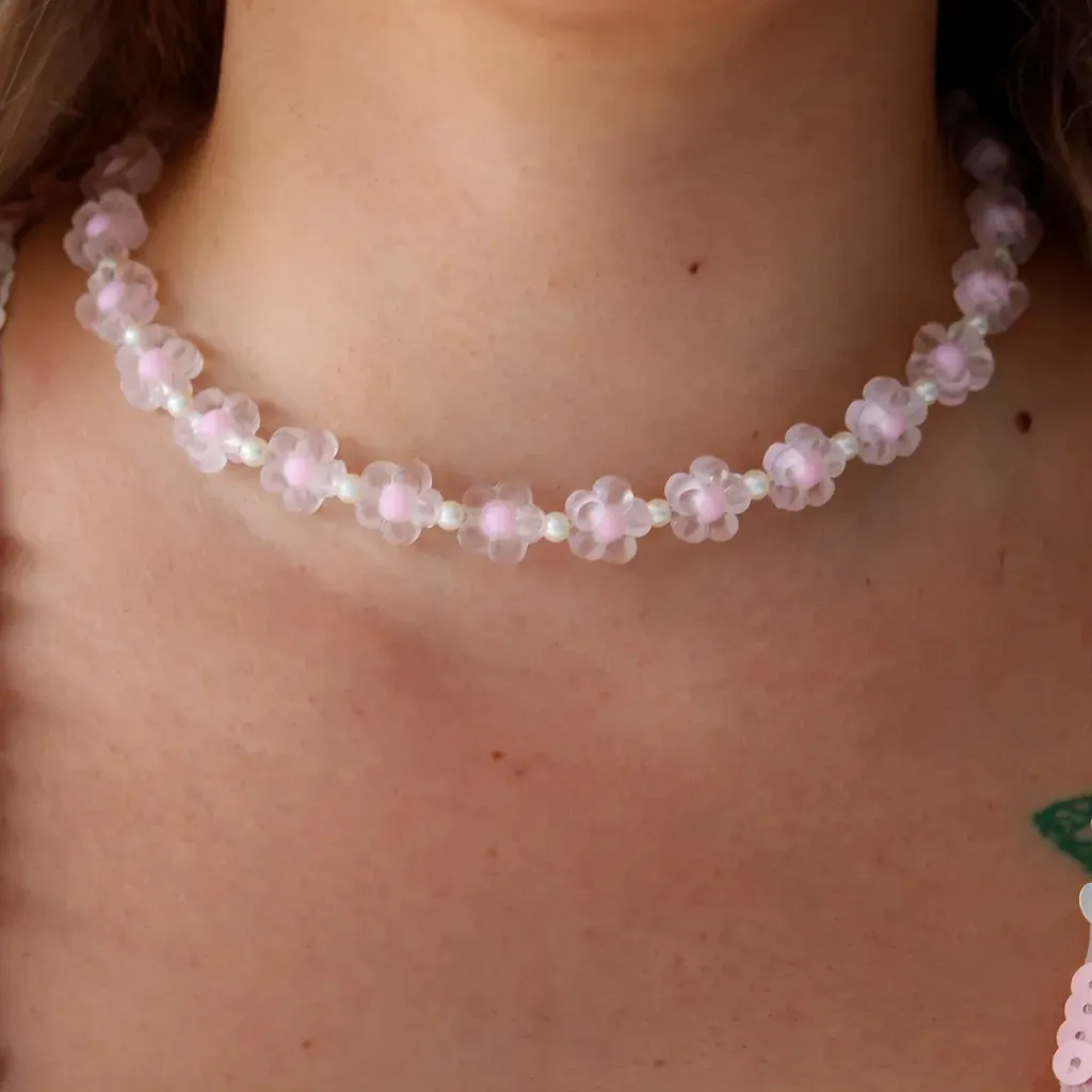 Introducing our BLOOMING FANTASY necklace from our Barbie-inspired collection. Adorned with exquisite flower beads, this necklace embodies a delicate and light jewelry that gracefully enhances your style.