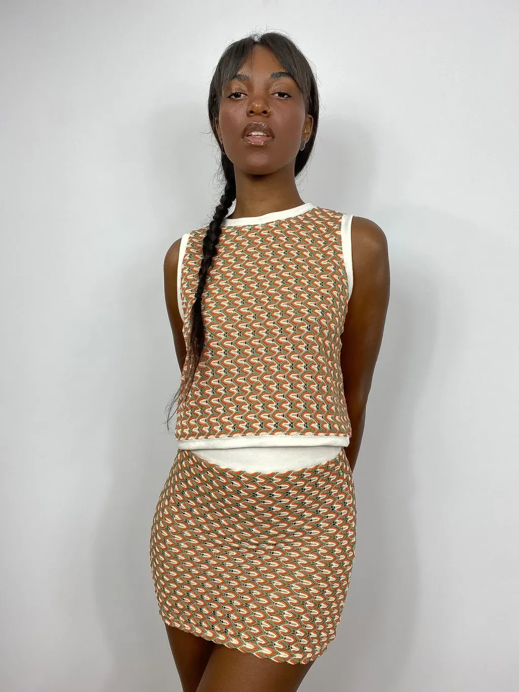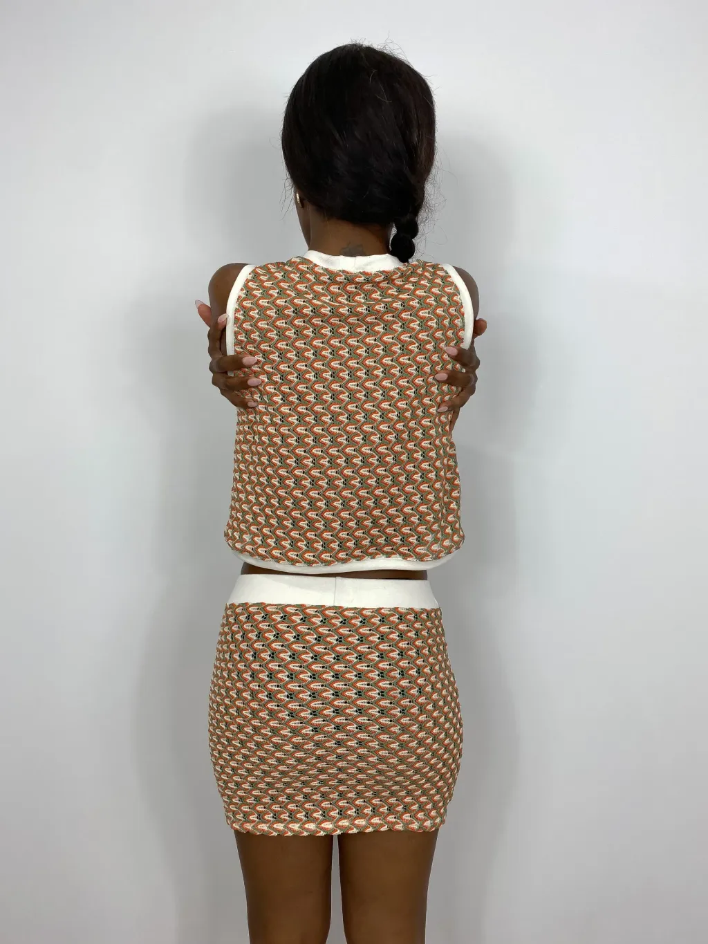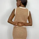 A round-neck camisole, featuring a modern crochet pattern and ribbed knit finish. Made from a lightweight fabric to breathe in the evening air, this camisole is just what you need to dare a stylish and comfortable look, perfect for the summer season!