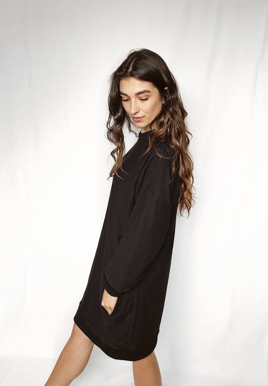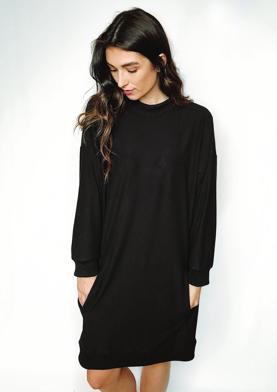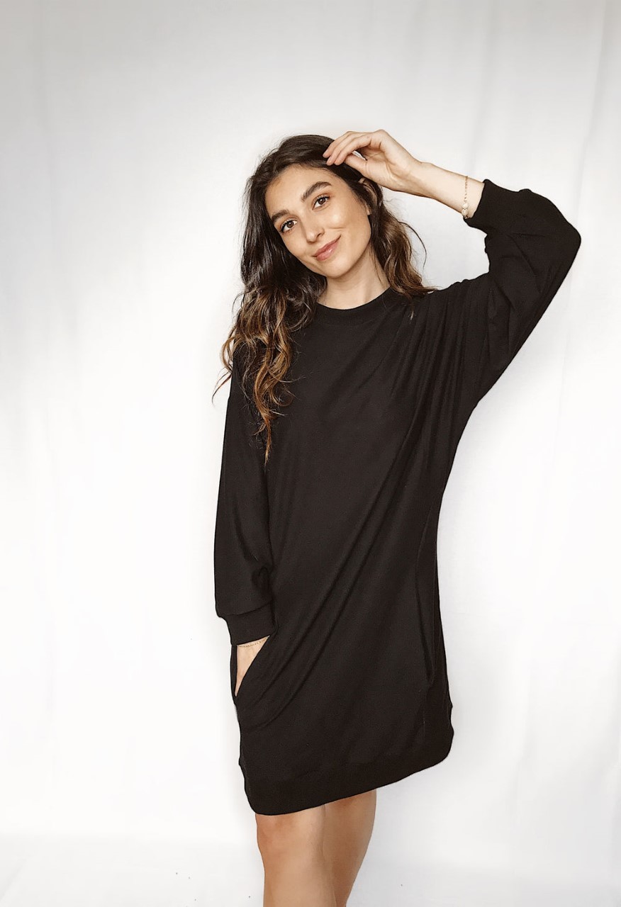 This timeless dress offers features like a ribbed knit neckline, cuffs and hem. Built-in pockets and subtle details complete this stylish and casual sweatshirt dress.