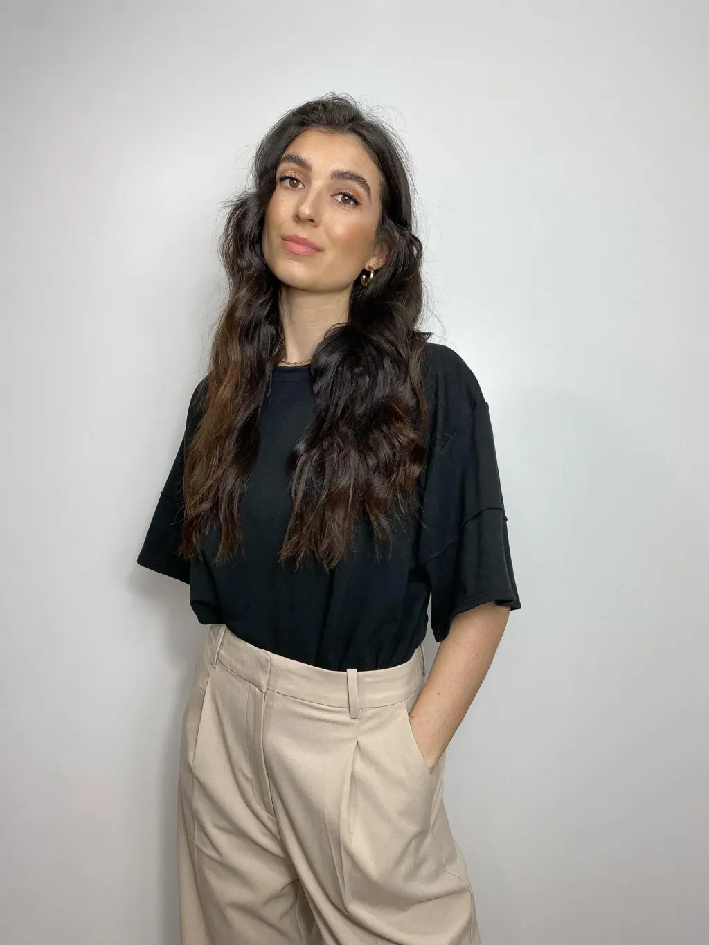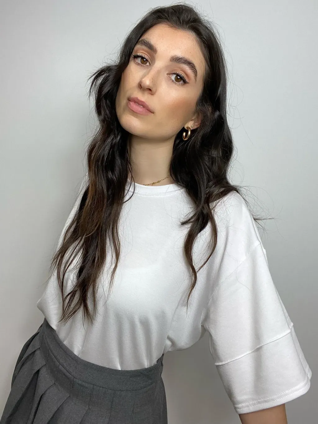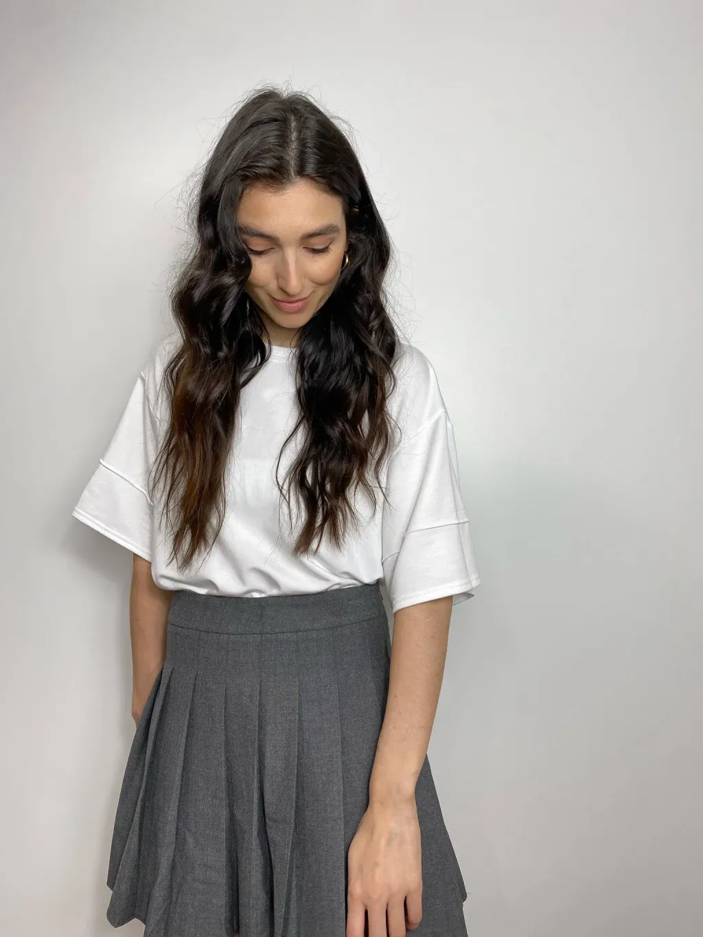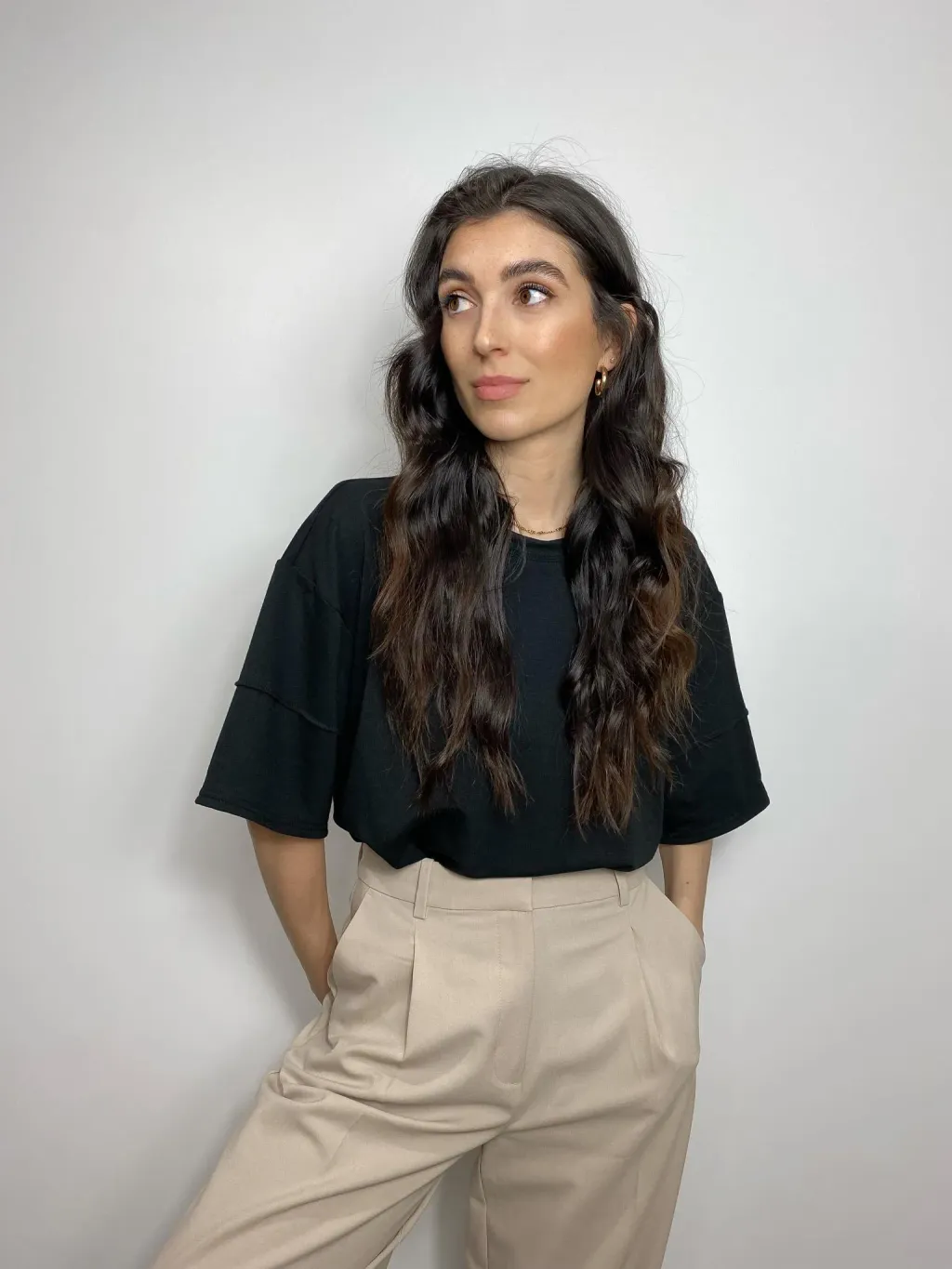 The ALYCE loose-fitting t-shirt is an elegant choice for all occasions. With its boxy cut and ribbed sleeve, it offers classic, timeless style. Its round neckline adds a comfortable touch. Perfect for simple, high-quality outfits.