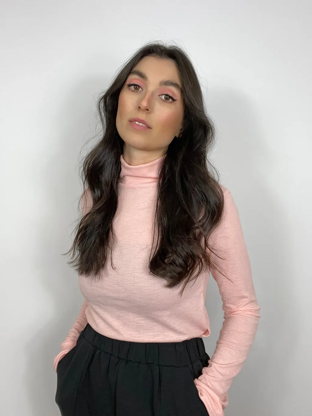 The sophisticated turtleneck in semi-opaque fabric embellished with a delicate, timeless line pattern will add a touch of elegance to your look. The perfect choice for elegant, distinguished style.