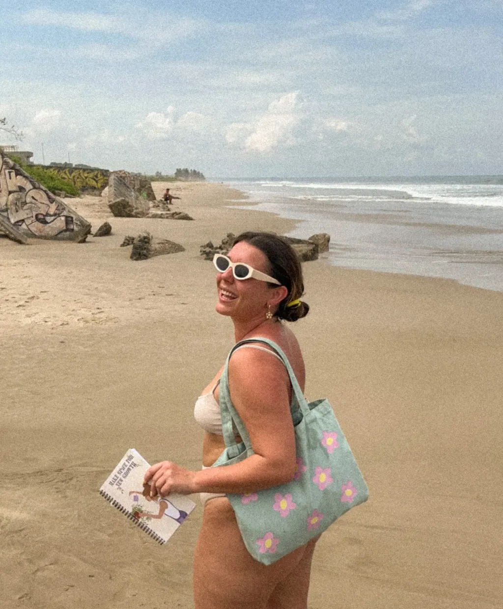 So practical with its inside pocket, this sage-coloured tote bag with its colourful little flowers is sure to follow you everywhere!