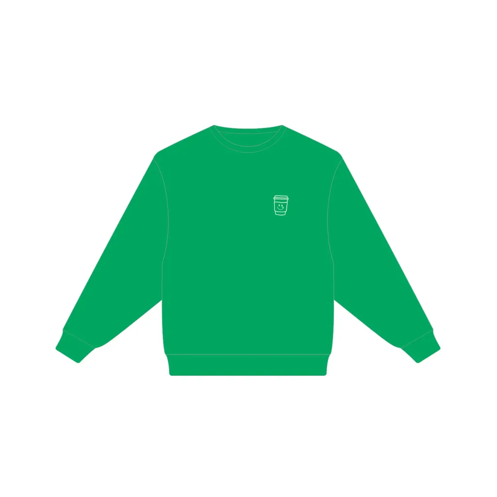 This staple crew neck is adorned with a happy tear latte over the heart, a nod to our beloved coffee culture in Montreal with an original quote handprinted on the back.