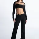 Pants designed with one strap on the side.
