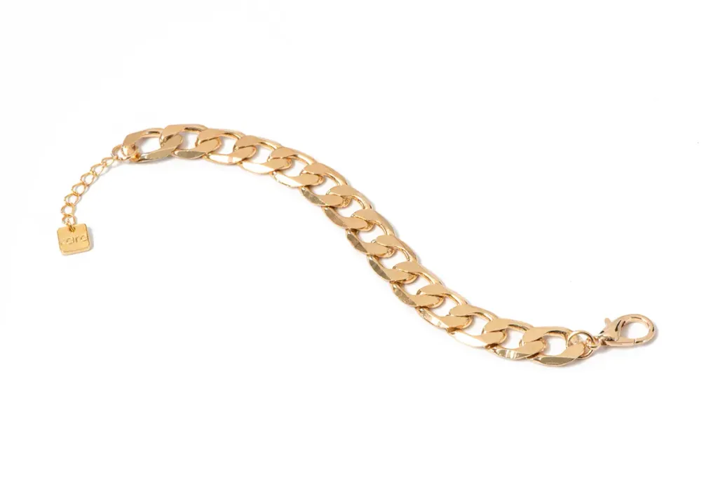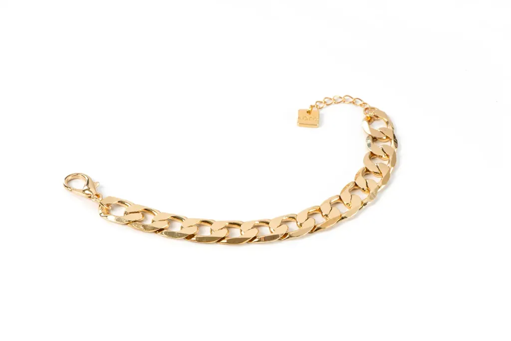 Show off your style with this beautiful gold bracelet with large flat links. Glamorous and trendy!