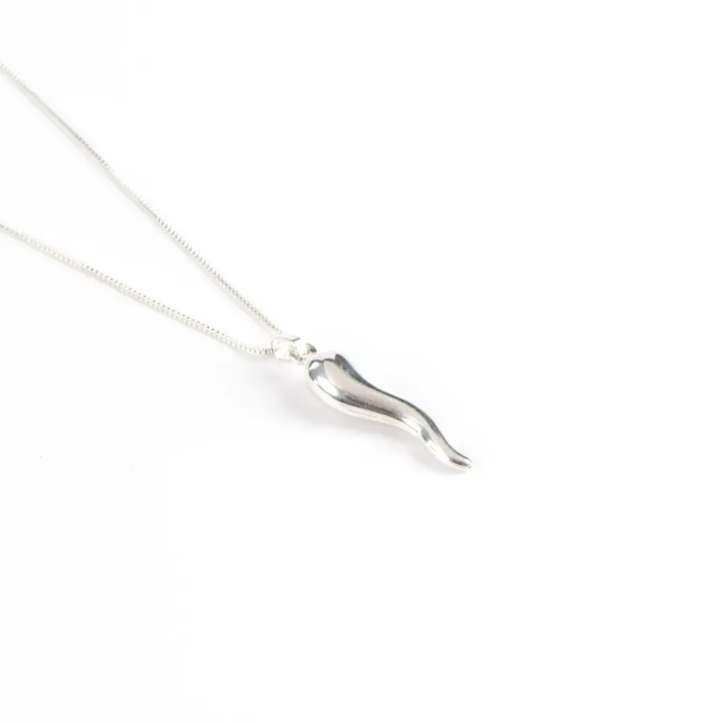 Attract good luck and protection with this pretty delicate silver necklace adorned with an Italian horn.