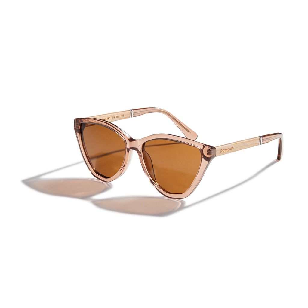 Introducing the Audrey Cat Eye Pink sunglasses – a must-have accessory for any fashion-savvy individual. These oversized cat-eye frames are designed with bold translucent pink acetate and alluring walnut wood temples, giving them a unique and luxurious finish.