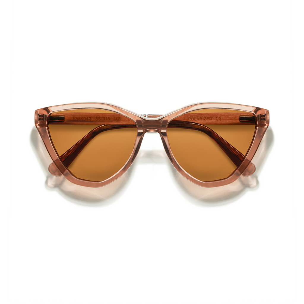 But it's not just about the aesthetics – these large cat eye sunglasses also provide top-notch protection for your eyes with their amber polarized lenses. They not only reduce glare, but also give the world a warm, golden hue. And with their playful geometric silhouette and angled lines, these polarized pink sunglasses are sure to turn heads wherever you go.So why wait? Channel your inner Audrey Hepburn and embrace your chic and sophisticated side with these pink cat eye sunglasses.