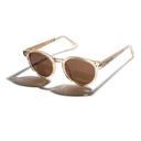 Looking for the perfect pair of round acetate sunglasses to elevate your style and protect your eyes from the sun? Look no further than these trendy polarized brown sunglasses! With their translucent brown frame, keyhole nose bridge, and slimline wooden arms, these retro-round sunglasses offer a chic throwback finish that is sure to turn heads. And with their brown polarized lenses, you can trust that your eyes will be well protected from harmful UV rays.