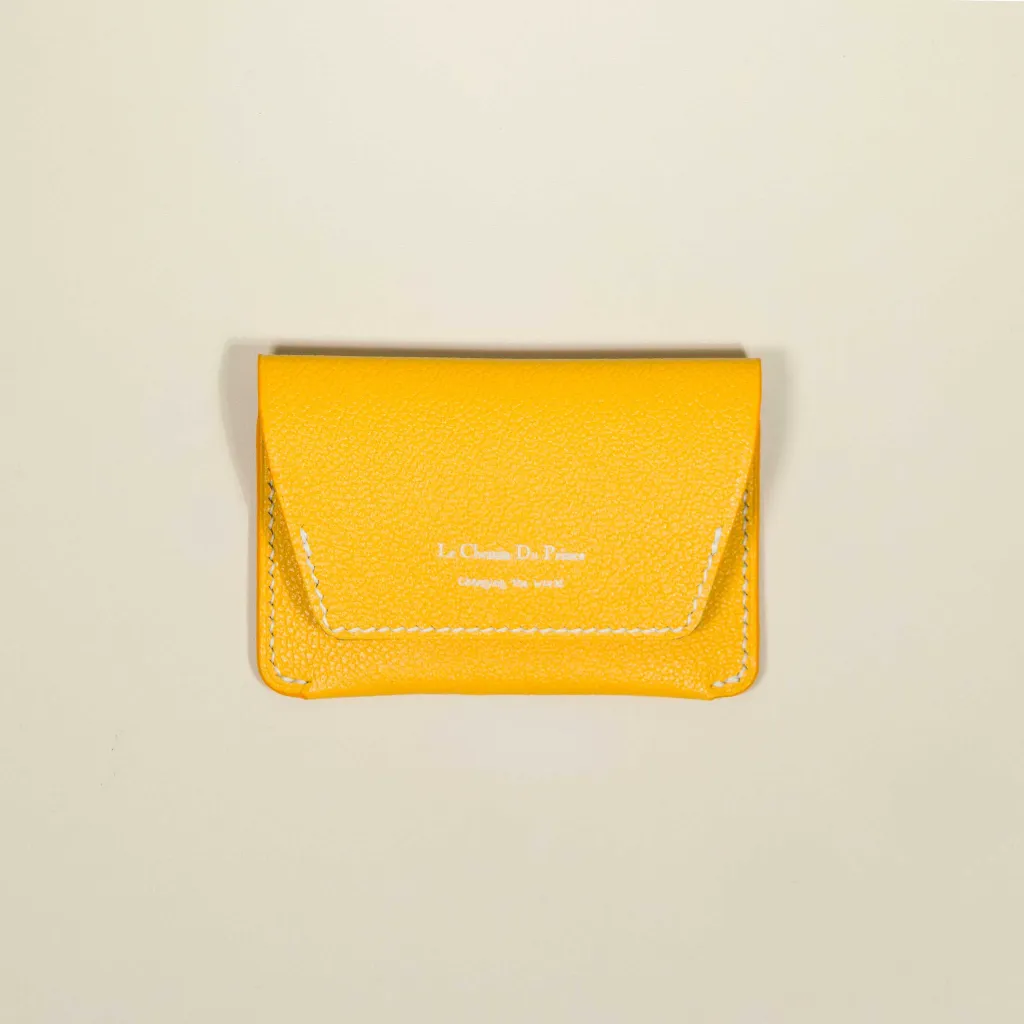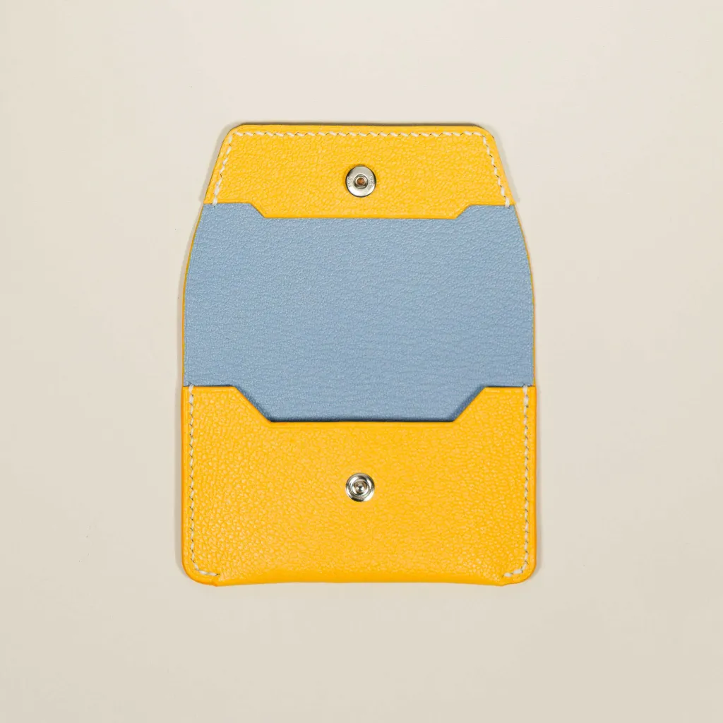 This goat leather card holder, both practical and trendy, is secured with a discreet snap button. It's the perfect companion for customers looking for a sleek style and reliable functionality.