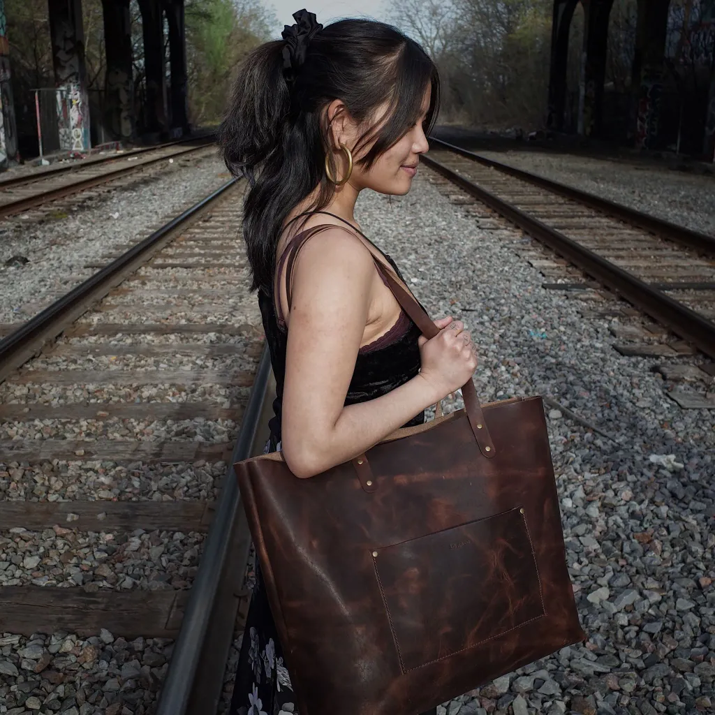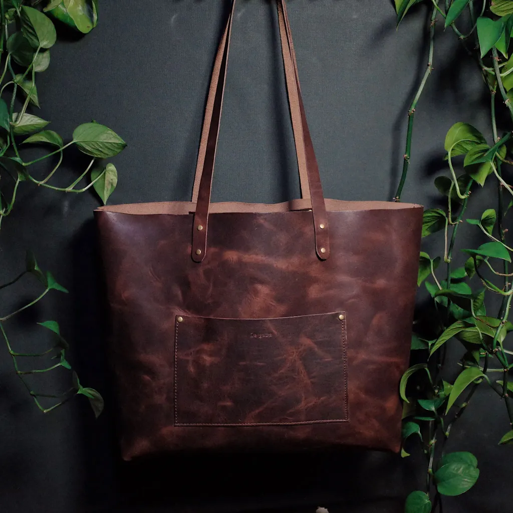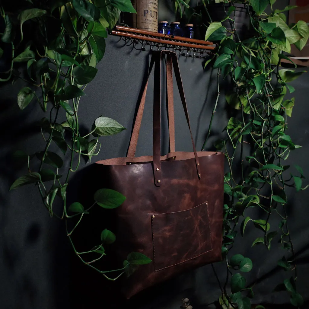 The Dunham tote is the bag that you throw everything into when you’re rushing out the door. Roomy enough for your coziest fall sweater, your computer case, a good novel, and whatever else you’ll need for the day, and tough enough to hold the weight. This beauty is entirely handcut and crafted from Horween vegetable-tanned leather, and boasts a sweet inside pocket for your valuables. An everyday tote that you can bring on a weekend trip or pair with your evening wear. Looks just as good when stuffed full.