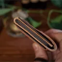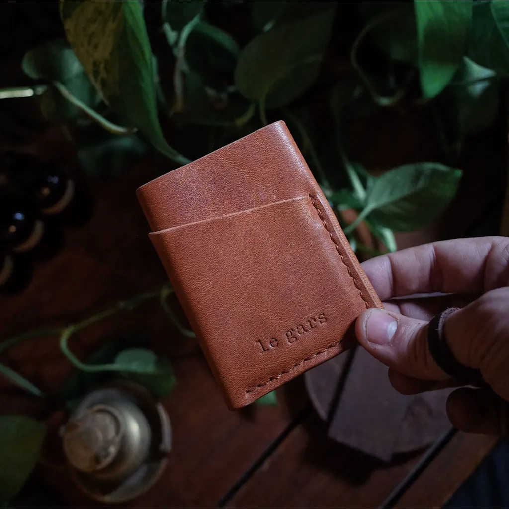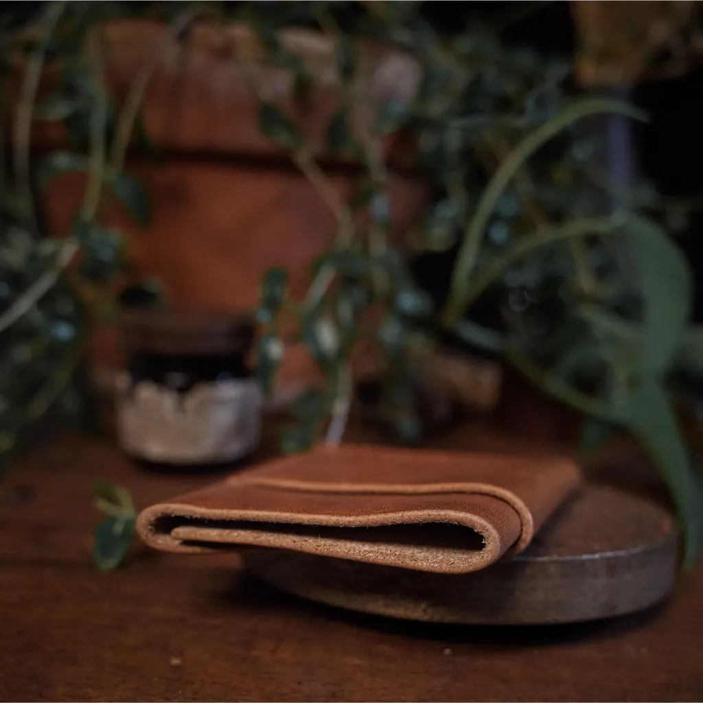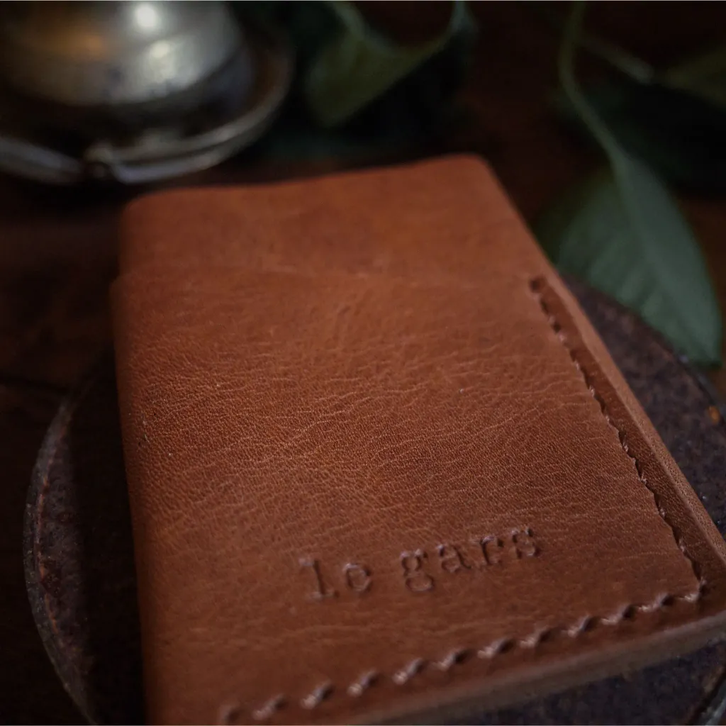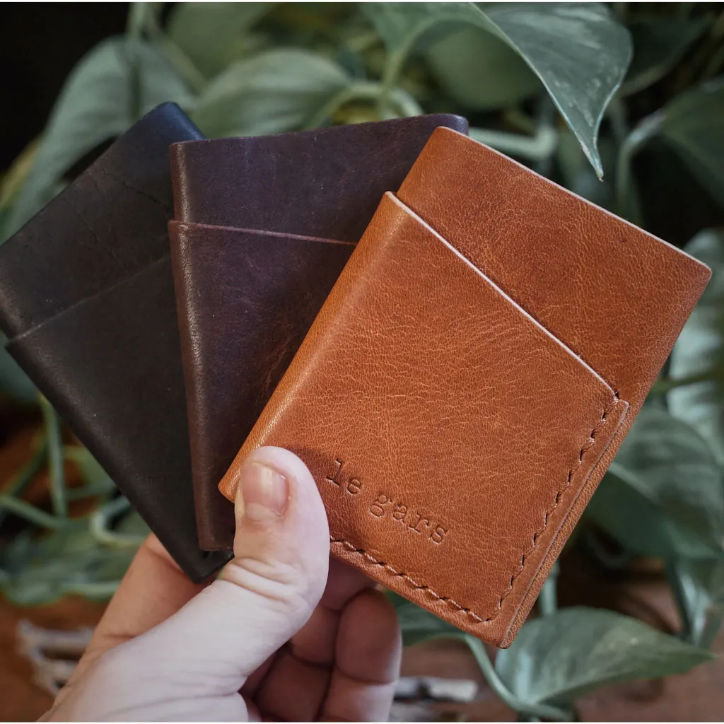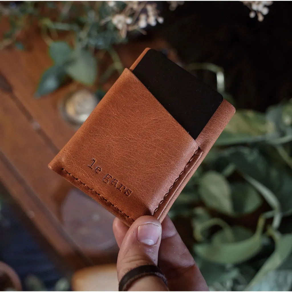 My minimalist cardholder is just what it sounds like: an easy, practical way to carry around your essentials. Handmade with care from a single piece of leather that wraps around itself to create three sleek little pockets. Elegant, but modest enough not to brag about it. Holds up to six cards.