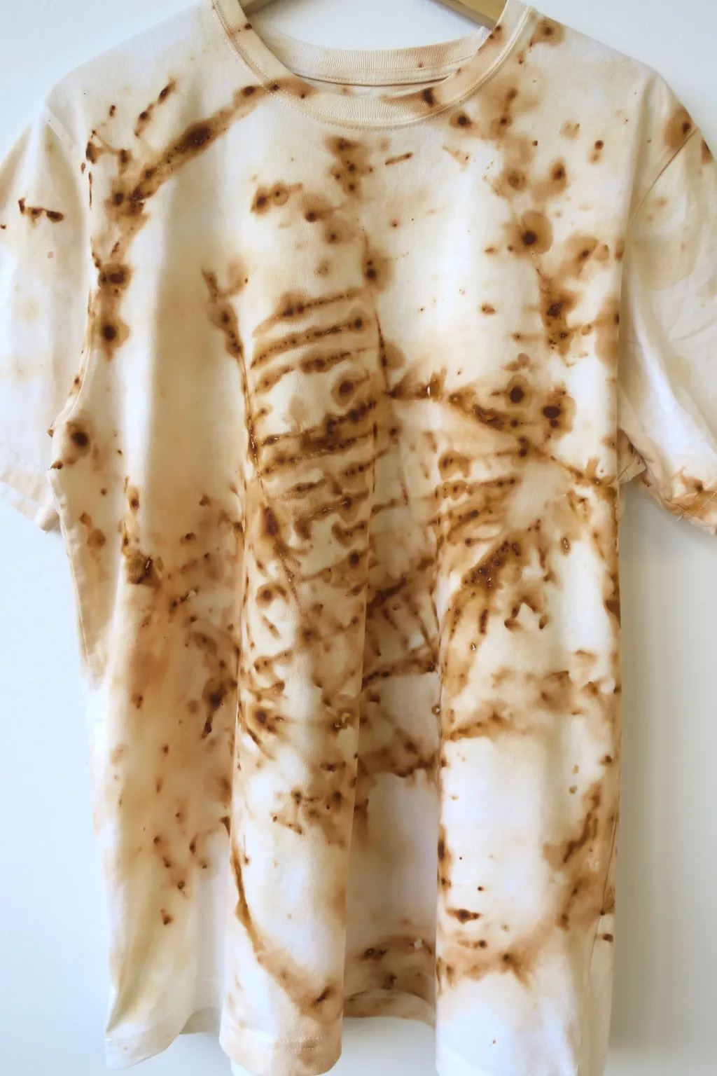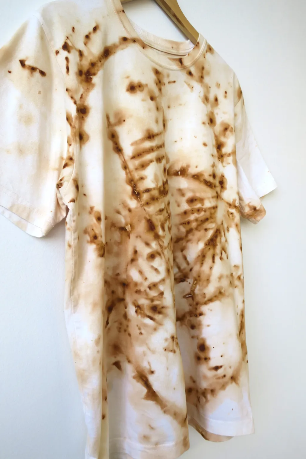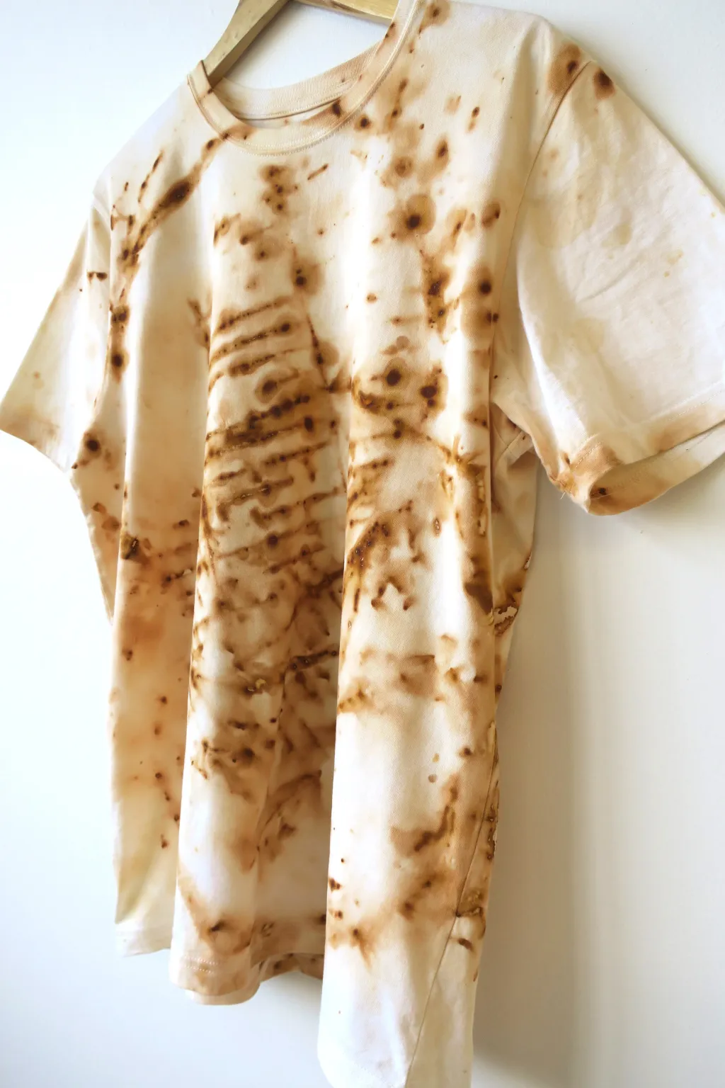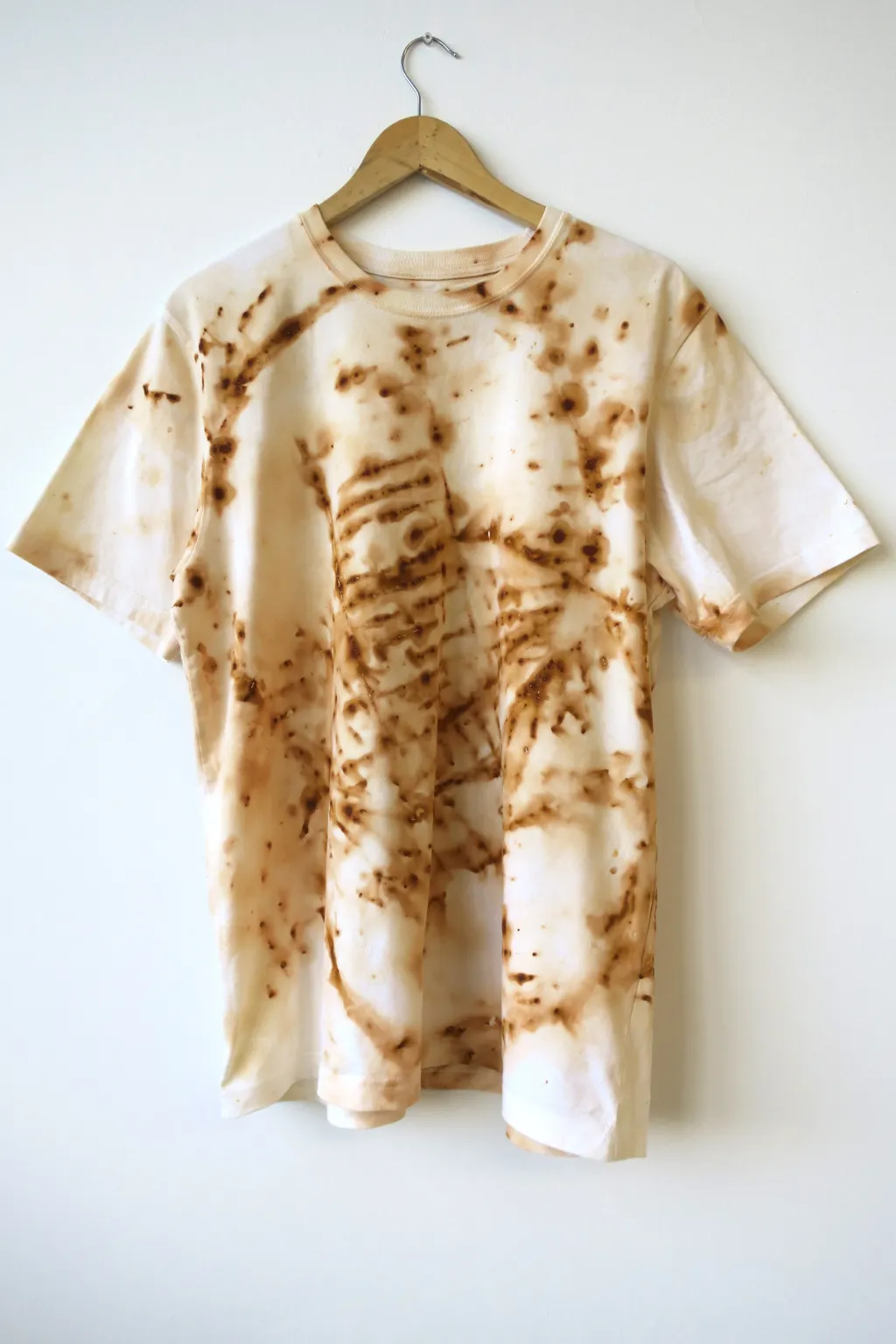 White 100% cotton t-shirt printed with rusted objects. Every shirt is unique.