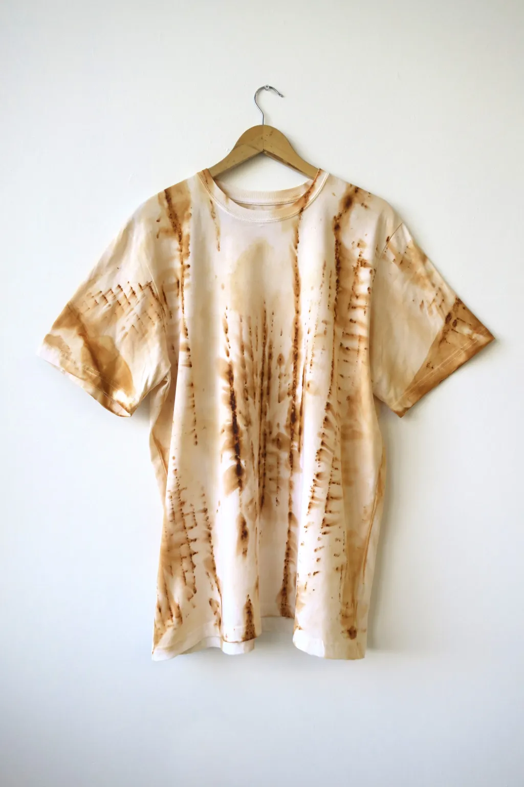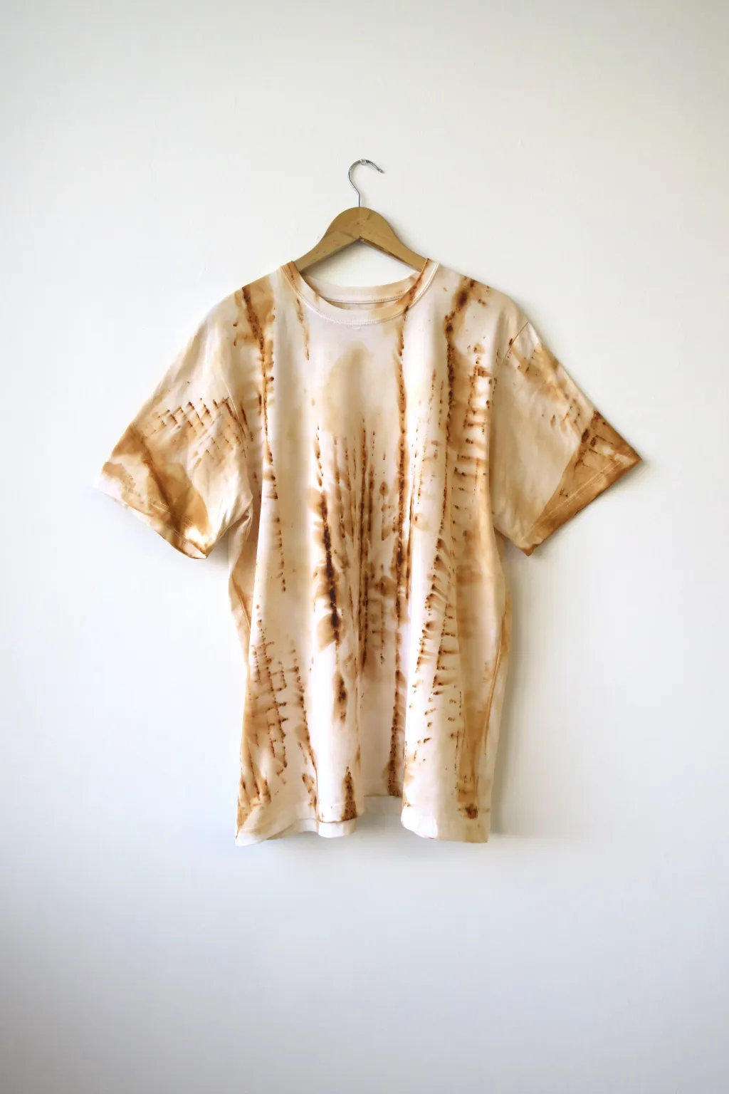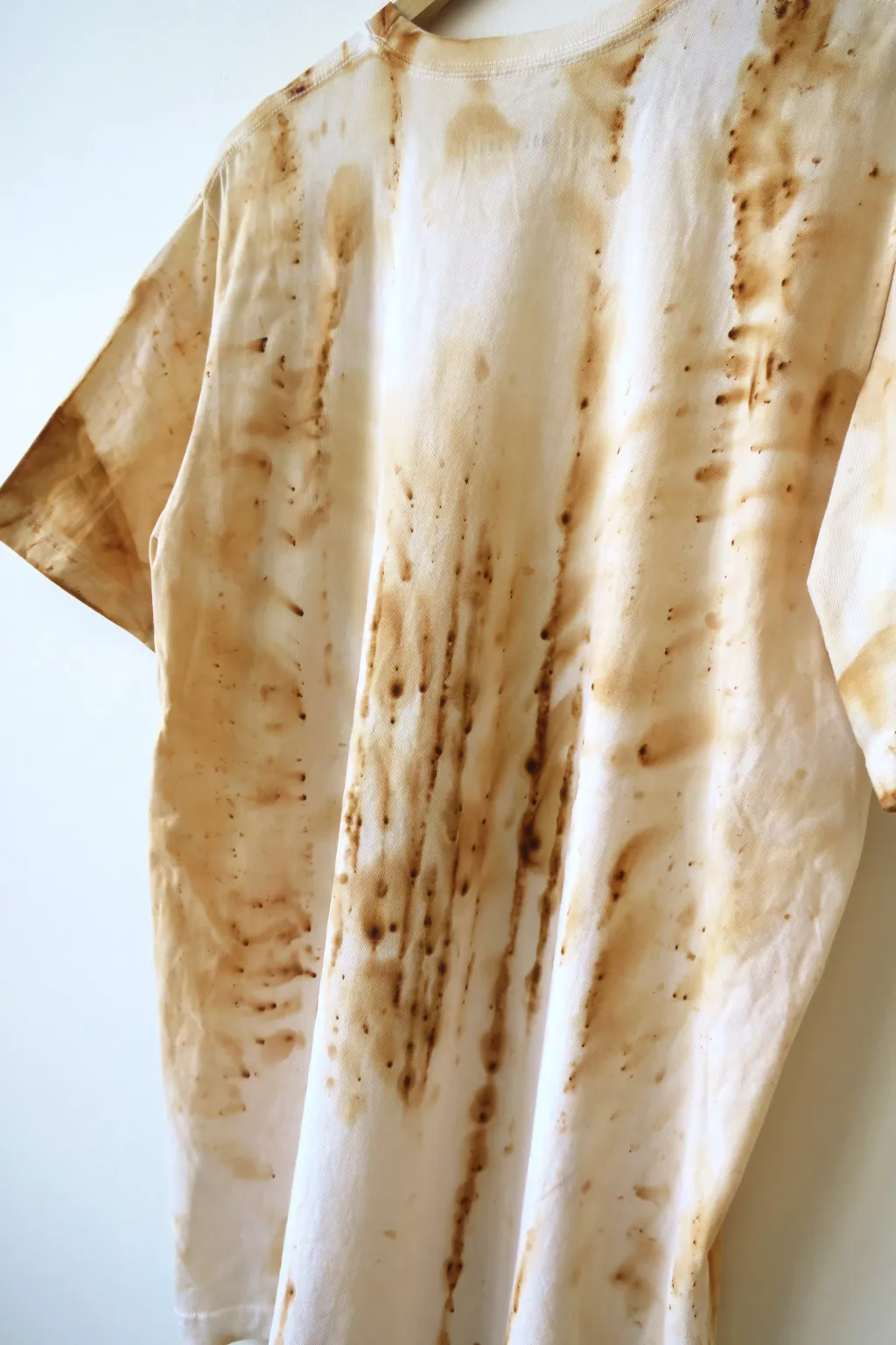 White 100% cotton t-shirt printed with rusted objects. Every shirt is unique.