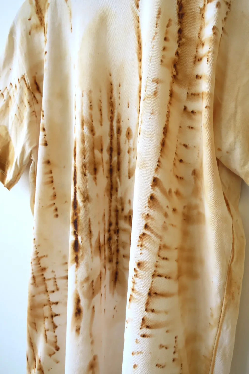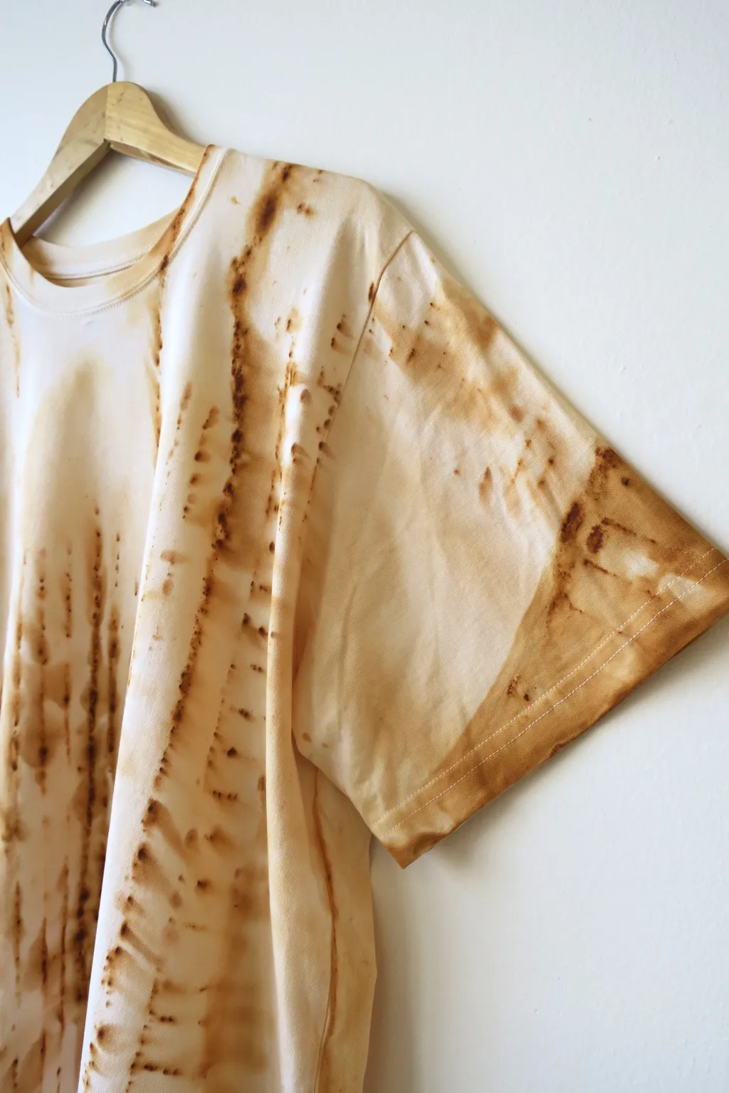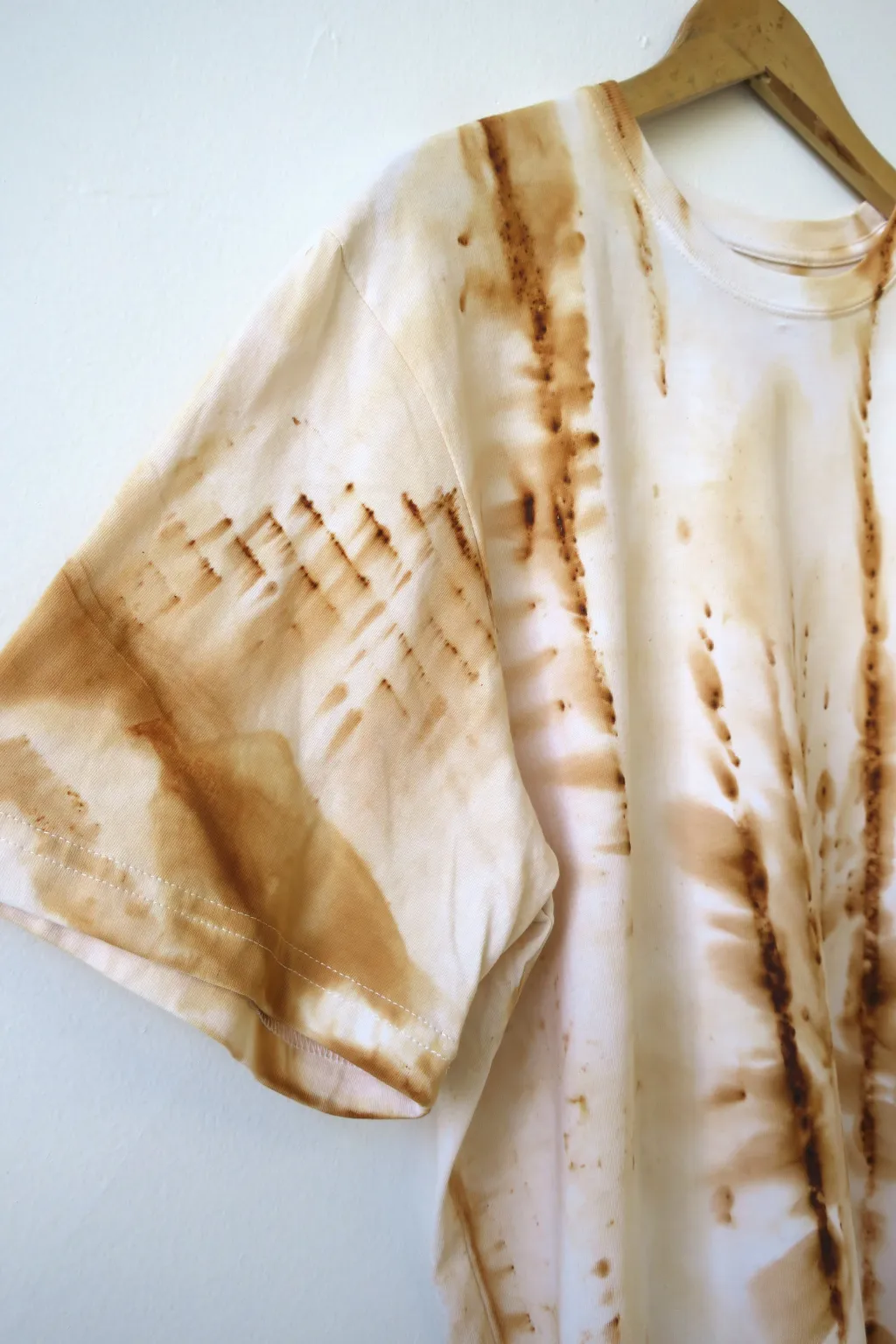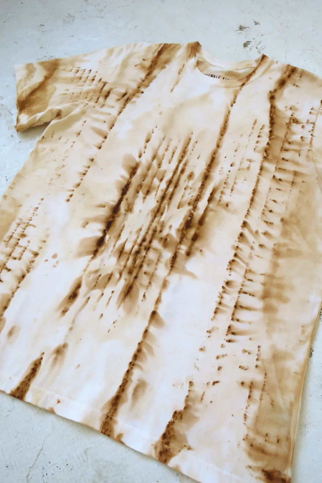 White 100% cotton t-shirt printed with rusted objects. Every shirt is unique.