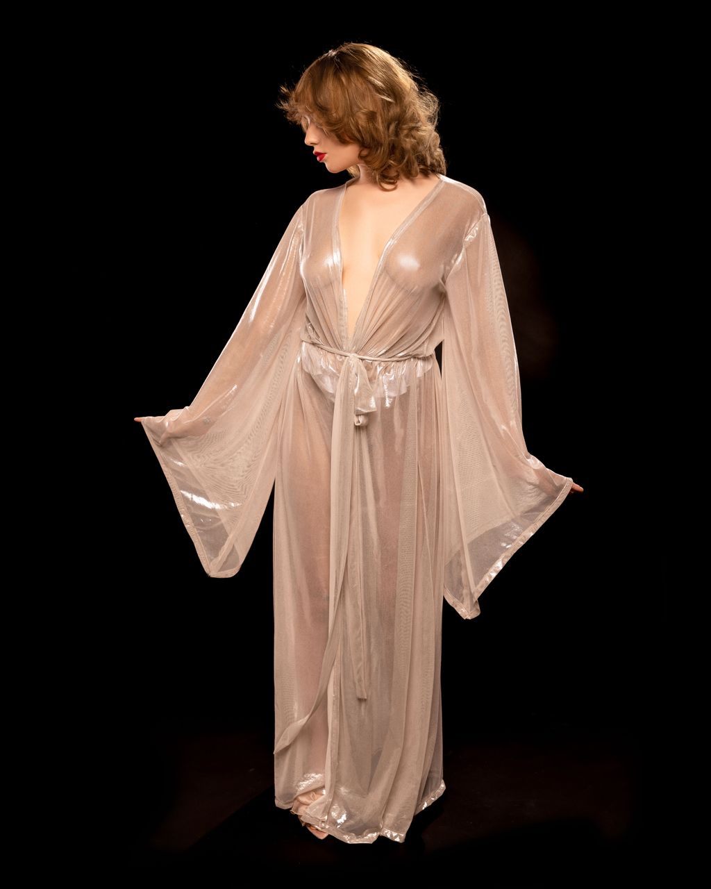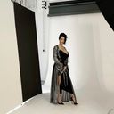 This elegant 70s style maxi dress is made of electro knit.