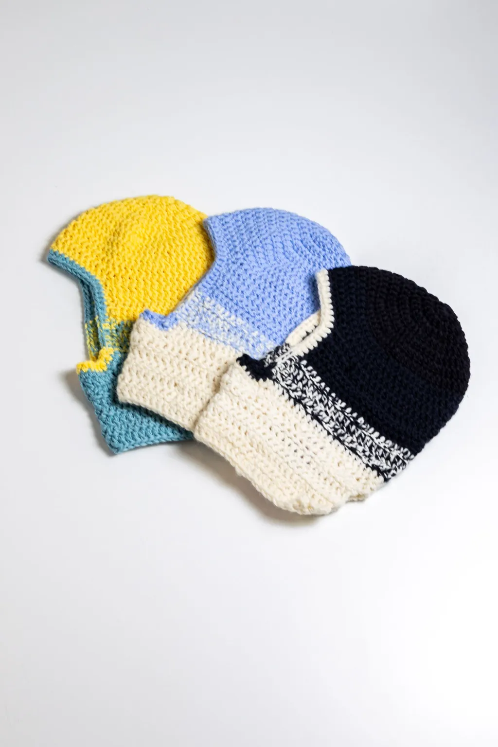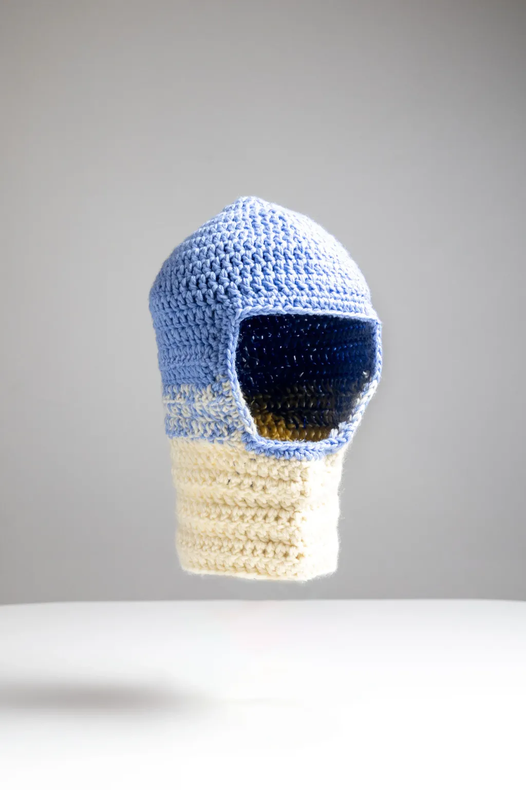 Merino wool balaclava, hand-knitted, crocheted by the Quebec-based company Mamé."