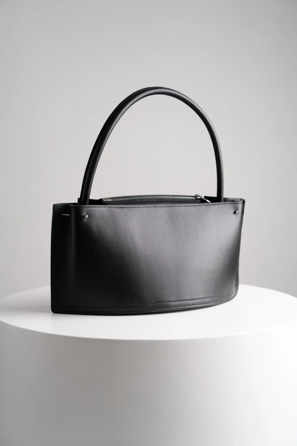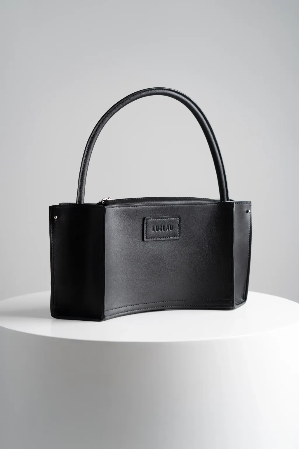 Concave handbag with open compartment and zipper, by the brand LUCLAU, which follows the shape of the body. Lightweight and ideal for holding your essentials.