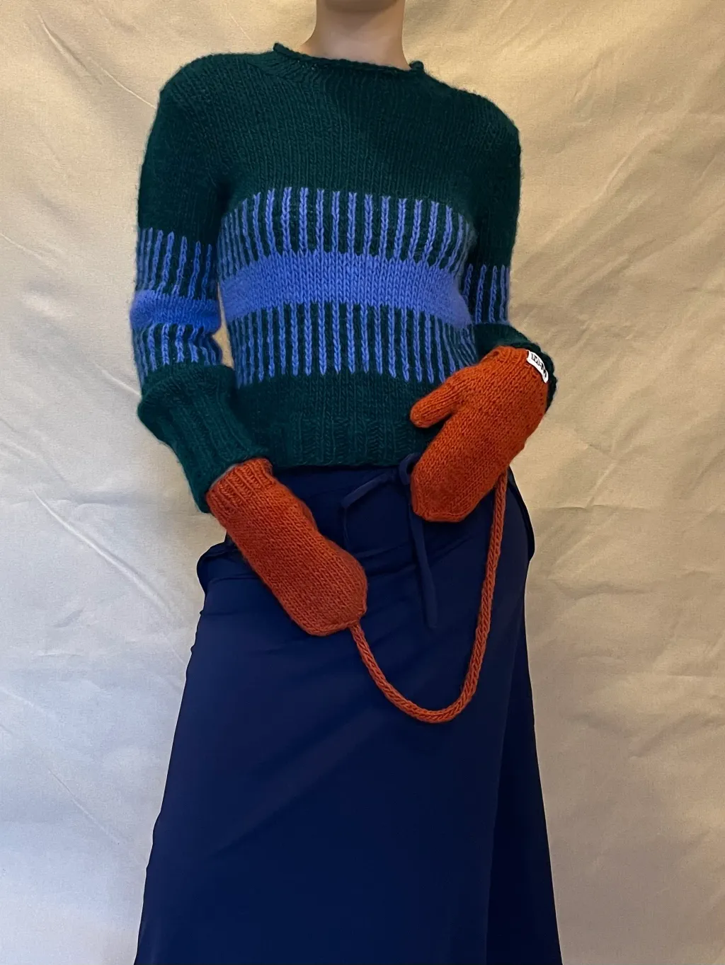 Hand knitted with 100% hand-dyed virgin wool yarn, these mittens have a detachable cord to ensure you don't lose them.