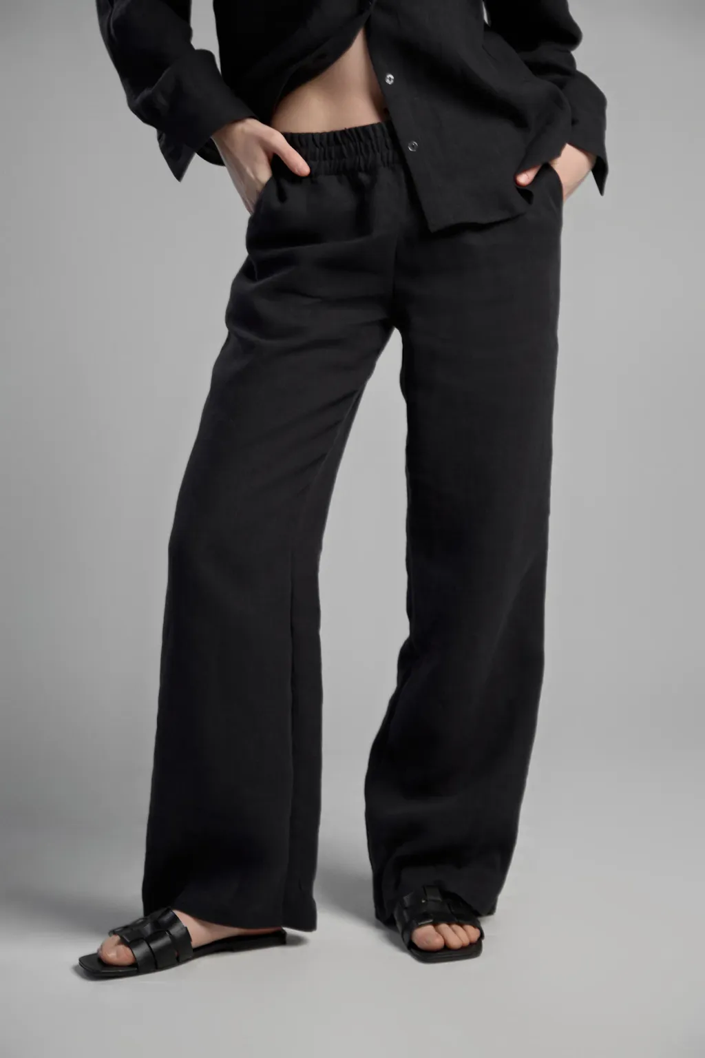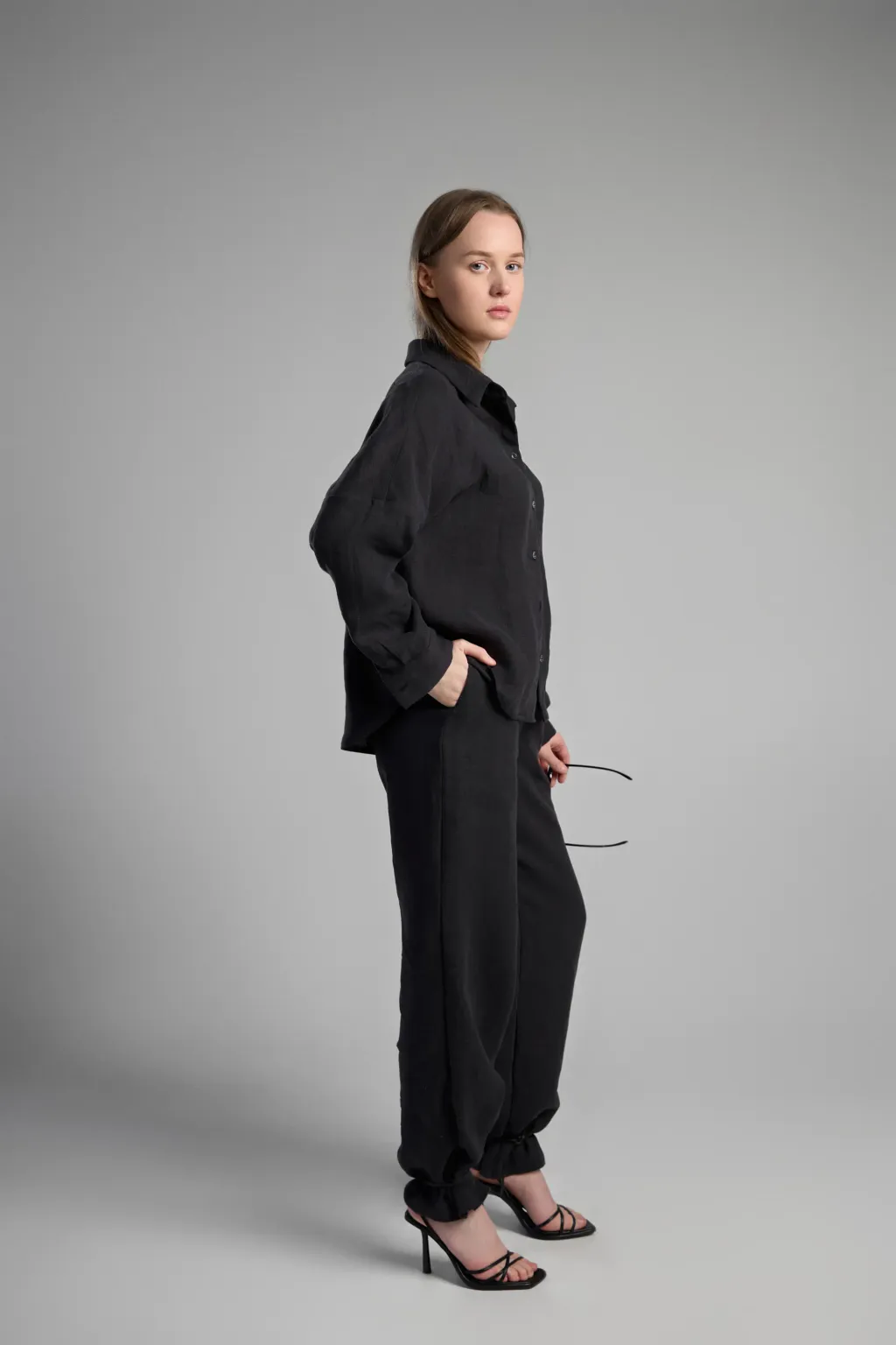 High-quality hemp suit (prêt-à-porter) - a new level of comfort. This lightweight and breathable outfit consists of a loose-fitting shirt and comfortable elastic-waisted trousers.