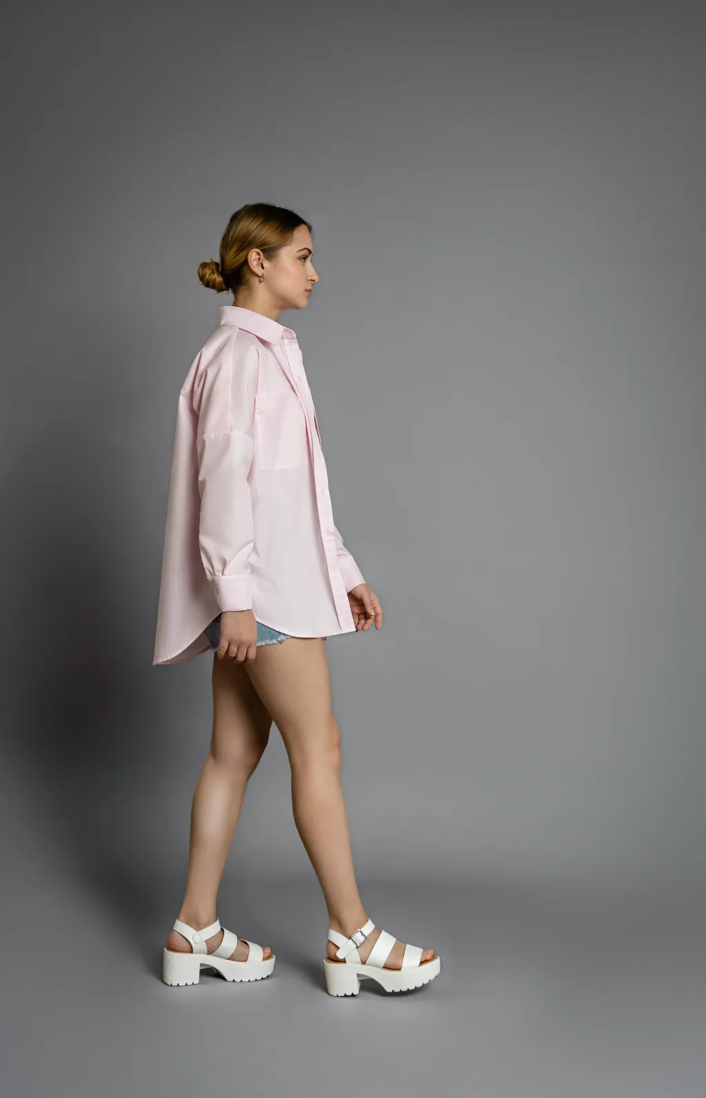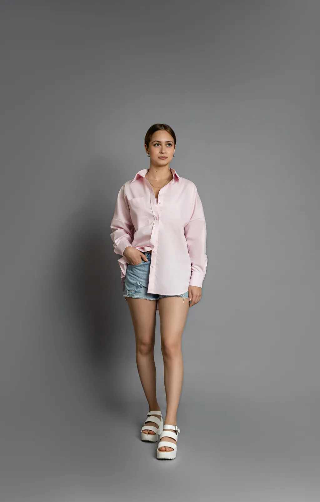 An oversized shirt in a cotton blend with a straight silhouette will become the favorite clothing of: teenage girls, adult girls, women and even pregnant women.