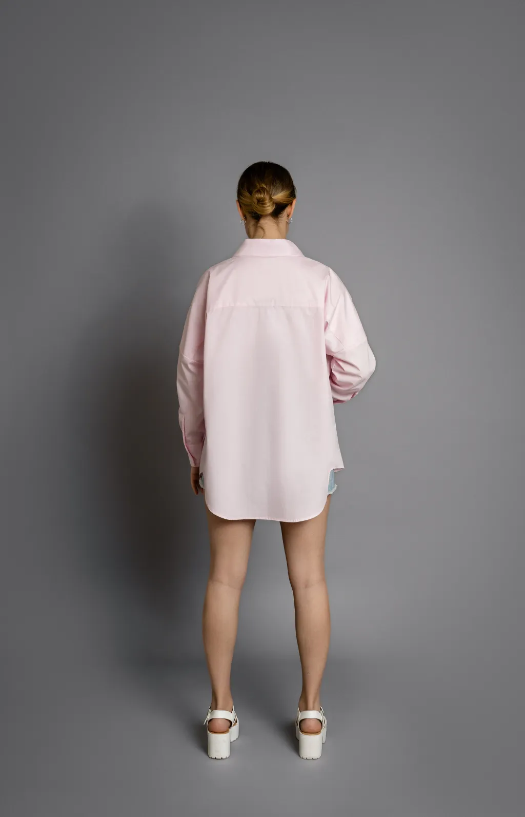 Laconic oversized shirt is perfect for office and school, evening spring walks, festive events.