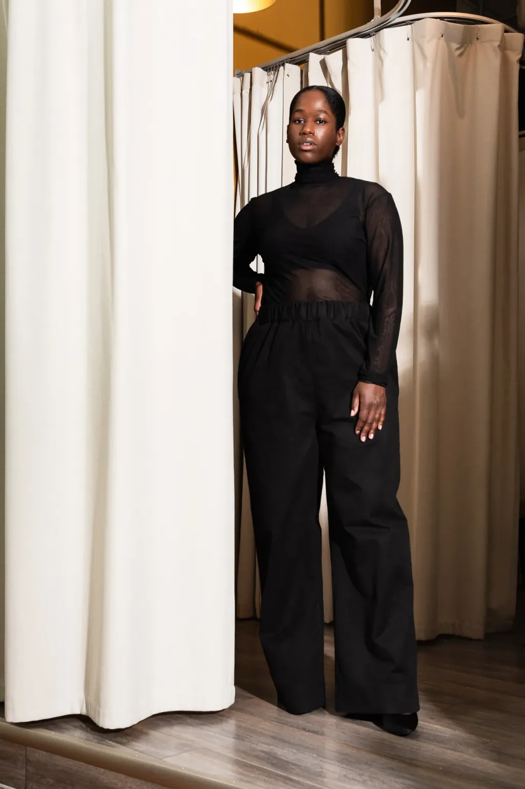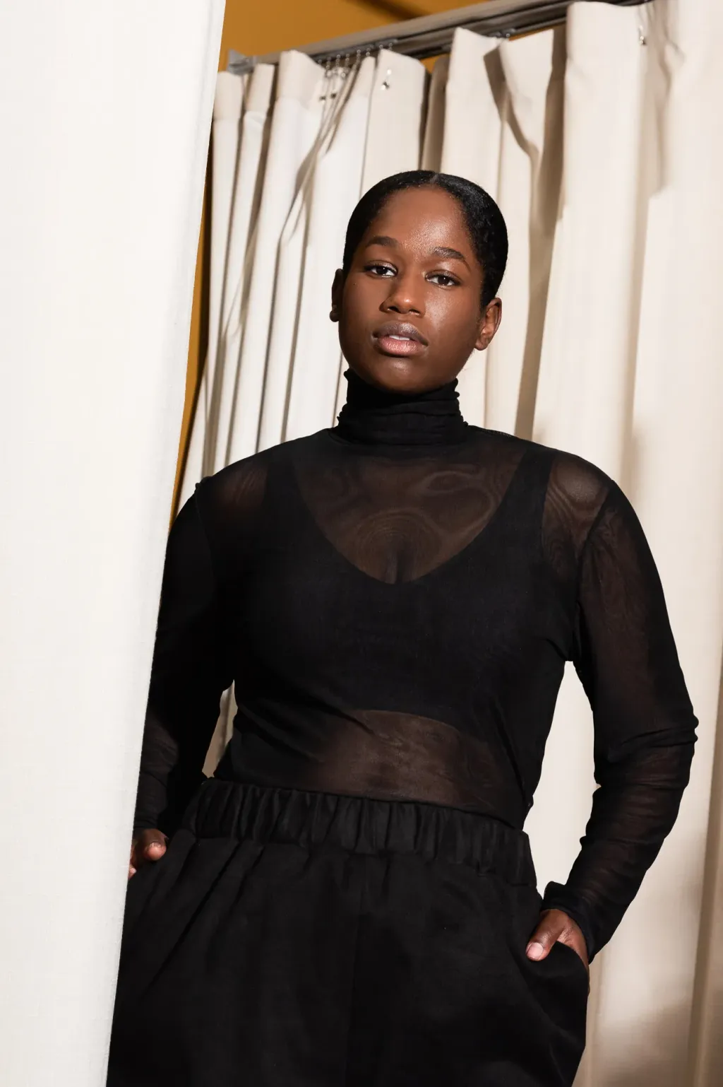 The Isa top is the perfect combination of style and comfort. Crafted from mech, this black turtleneck offers a modern and luxurious look to any outfit. Its simple yet classic design enables easy layering and its durability means it can be worn all year round.