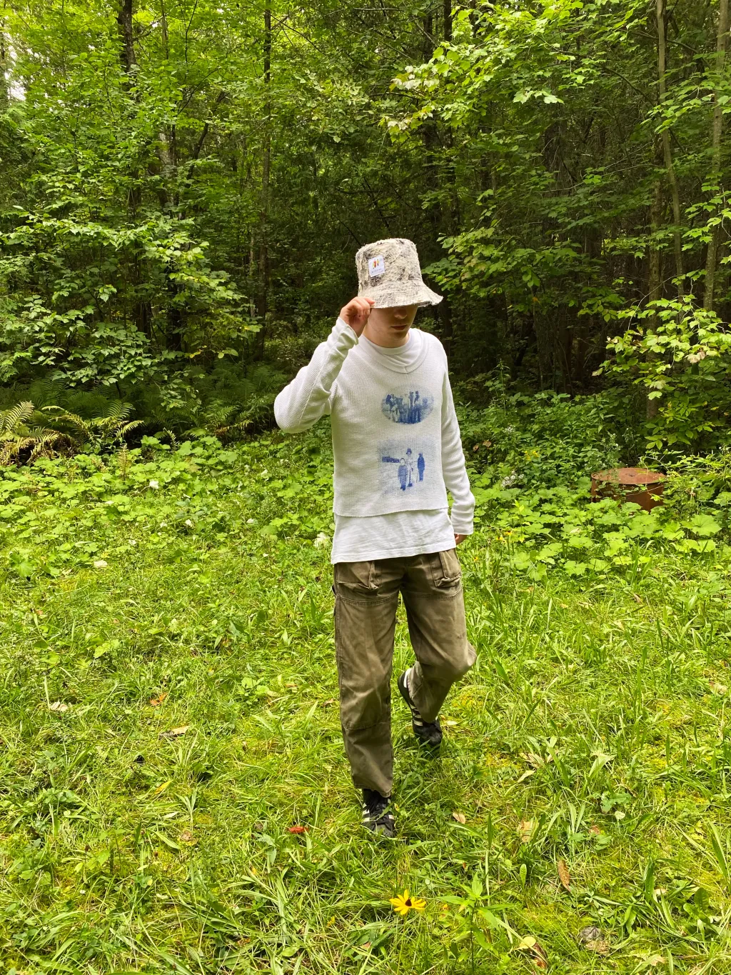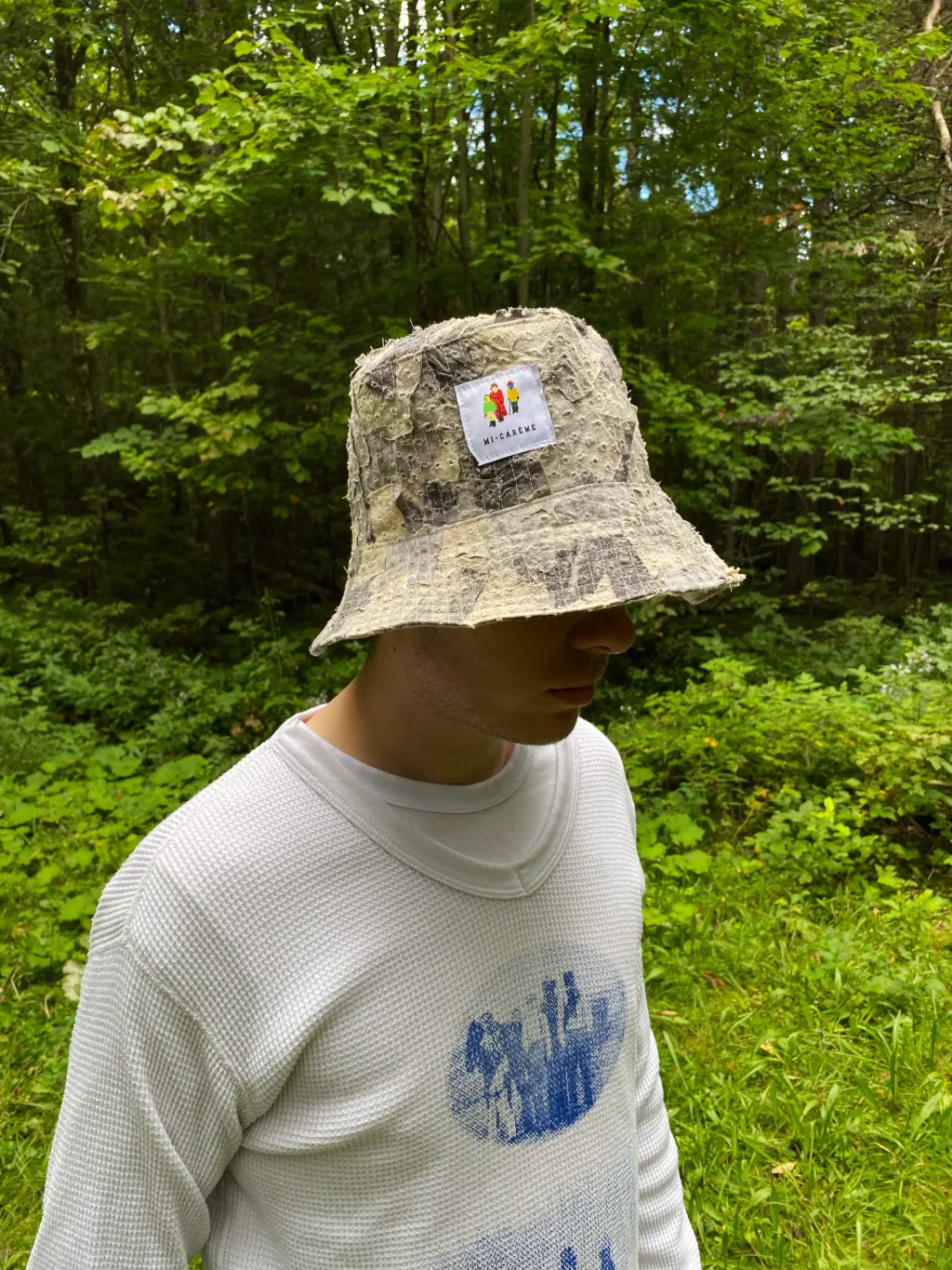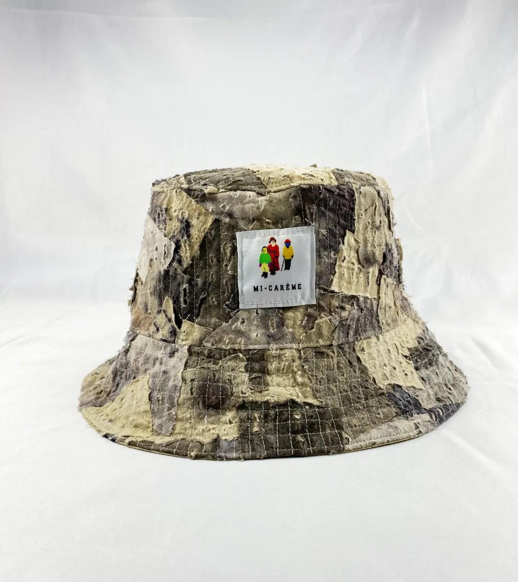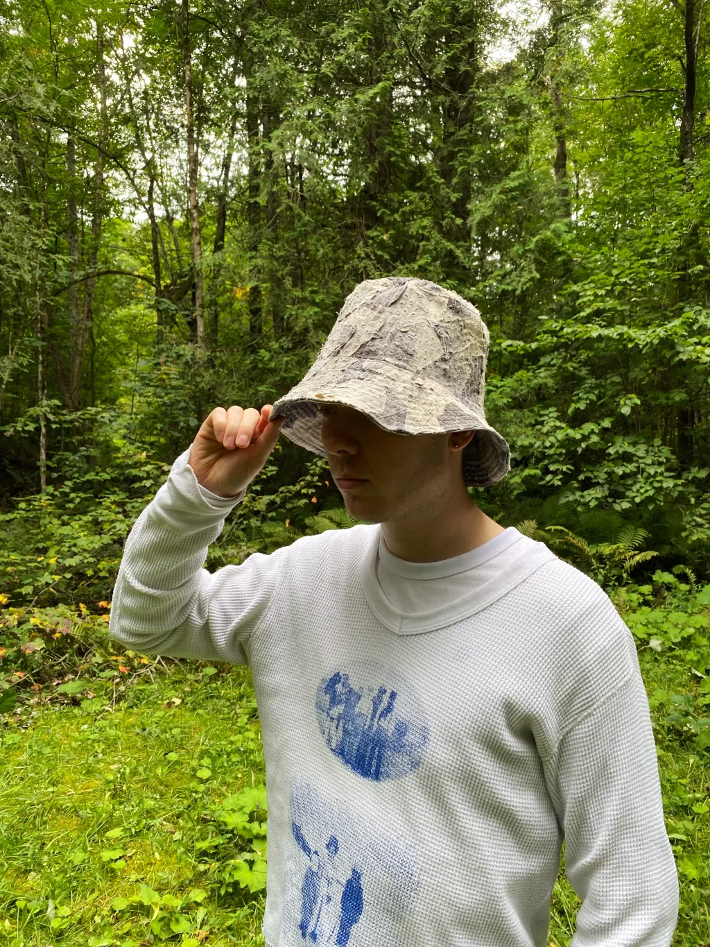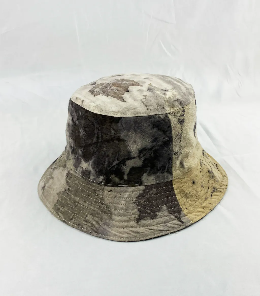 Side A : Made from 100% cotton and printed using the Eco-print technique. This technique is a plant printing process by which leaves of trees (or other plants) are printed on the fabric. The result obtained is different from one time to the next and generates images that are both figurative and abstract, like a very unique camouflage.