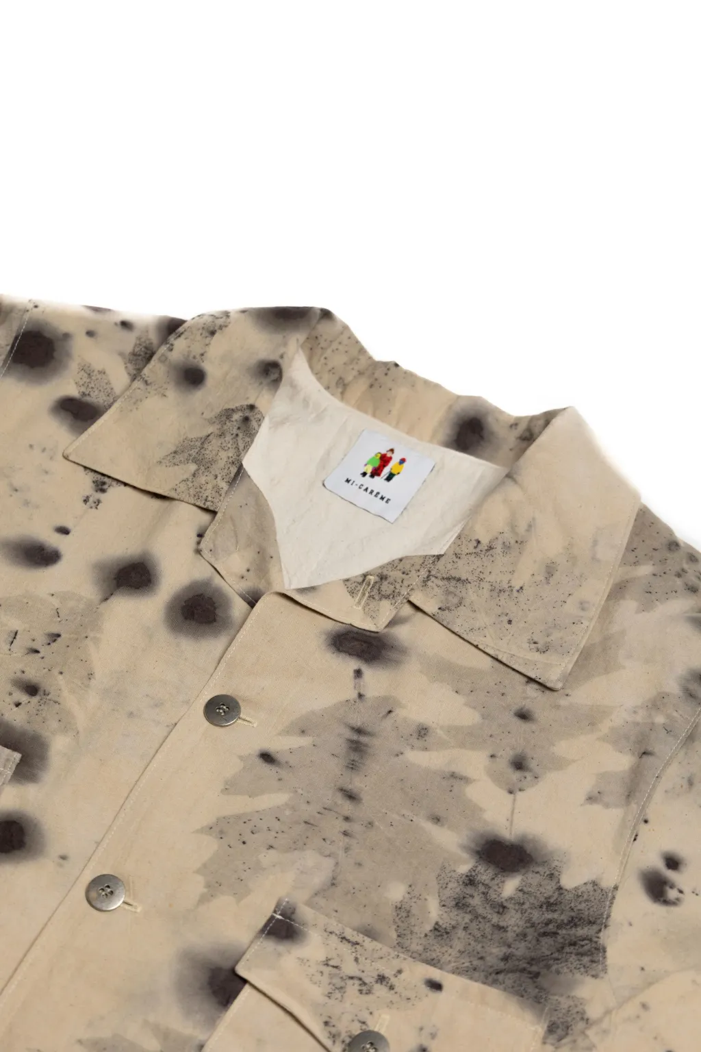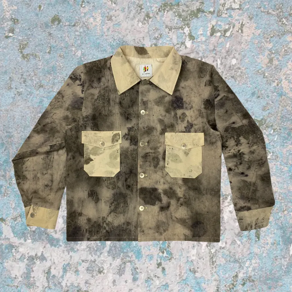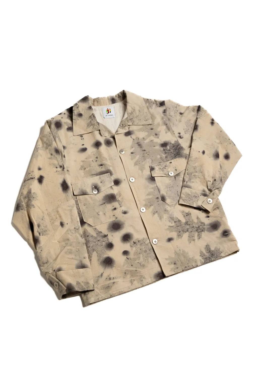 -100% cotton fabric printed using the Eco-print technique. This technique is a plant printing process by which leaves of trees (or other plants) are printed on the fabric. The result obtained is different from one time to the next and generates images that are both figurative and abstract, like a very unique camouflage.